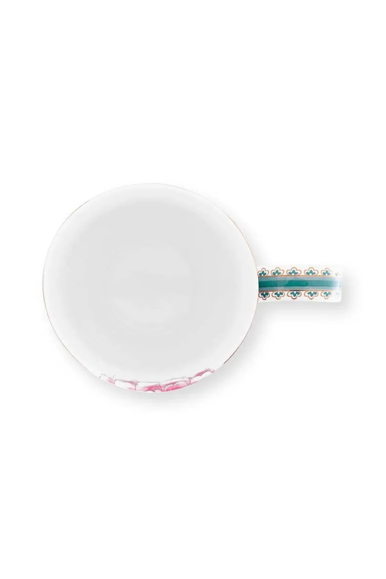 Deze Blauwe Mok Van Porselein Is Rondom Versierd Met Exotische Bloemen, Een Vogel En Gouden Details. De Grote Roze Bloem Valt Een Stukje Over De Rand Heen En De Achtergrond Heeft Een Verfijnd Dessin. Combineer Met De Rest Van Het Servies Uit De Blushing Birds Collectie.