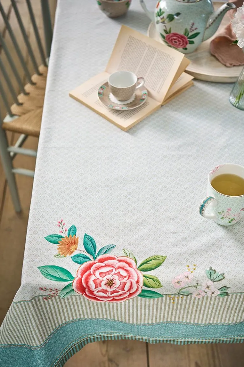 Dit Unieke Khaki Tafelkleed Geeft Net Wat Meer Gezelligheid Aan Tafel. Het Tafelkleed Is Gedetailleerd Met Verschillende Patronen En Exotische Bloemen Uit De Blushing Birds Collectie.