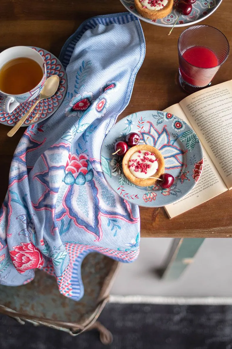 Vul Je Servies Aan Met Dit Flower Festival Gebaksbord Bord Van 17 Cm. Ons Gebaksbord Heeft Een Blauwe Achtergrond En Is Versierd Met Het Elegante Flower Festival Dessin. Dit Rijke Bloemendessin Is Opgebouwd Uit Een Variatie Van Fantasierijke Rode En Roze Chintzbloemen Met Lichtblauwe En Groene Bladeren. De Speels Geplaatste Bloementakjes Met Uitgewerkte Gedecoreerde Bloemen En Bladeren Geven Dit Verfijnde Dessin Een Extra Rijke Beleving. Met Ons Flower Festival Porselein Zul Je Jouw Servieskast En Tafel Laten Stralen.