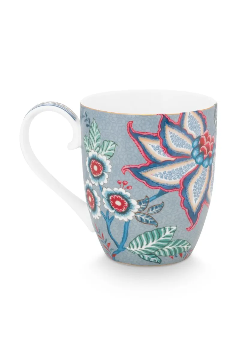 Vul Je Servies Aan Met Deze Flower Festival Xl Mok. Deze Xl Mok Heeft Een Blauwe Achtergrond En Is Versierd Met Het Elegante Flower Festival Dessin. Dit Rijke Bloemendessin Is Opgebouwd Uit Een Variatie Van Fantasierijke Rode En Roze Chintzbloemen Met Lichtblauwe En Groene Bladeren. De Speels Geplaatste Bloementakjes Met Uitgewerkte Gedecoreerde Bloemen En Bladeren Geven Dit Verfijnde Dessin Een Extra Rijke Beleving. Met Ons Flower Festival Porselein Zul Je Jouw Servieskast En Tafel Laten Stralen.