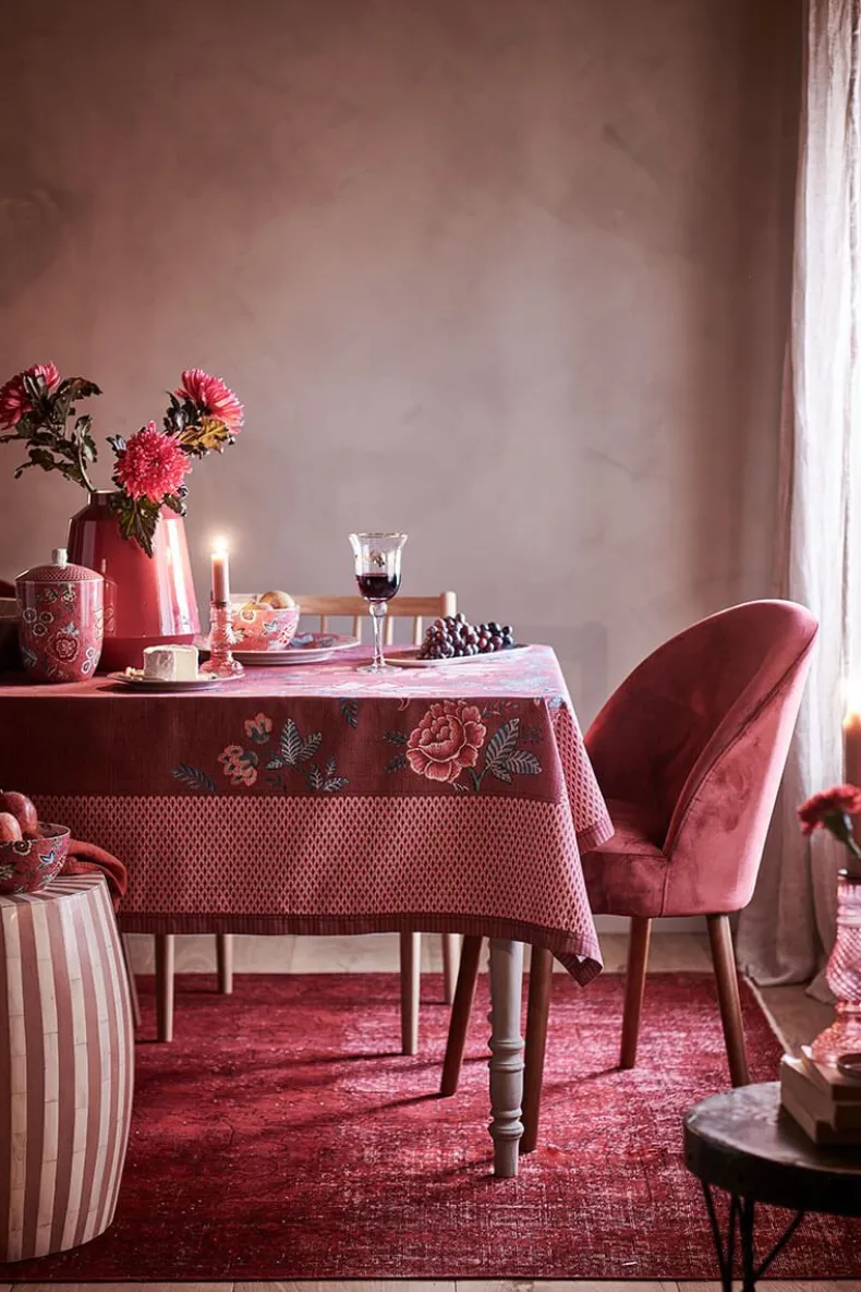 Fleur Je Tafel Op Met Deze Voorraadpot Uit De Flower Festival Collectie. De Voorraadpot Heeft Een Bloemendessin Met Fantasierijke Rode En Roze Chintzbloemen Met Lichtblauwe En Groene Bladeren Gecombineerd Met Een Scallop Dessin.