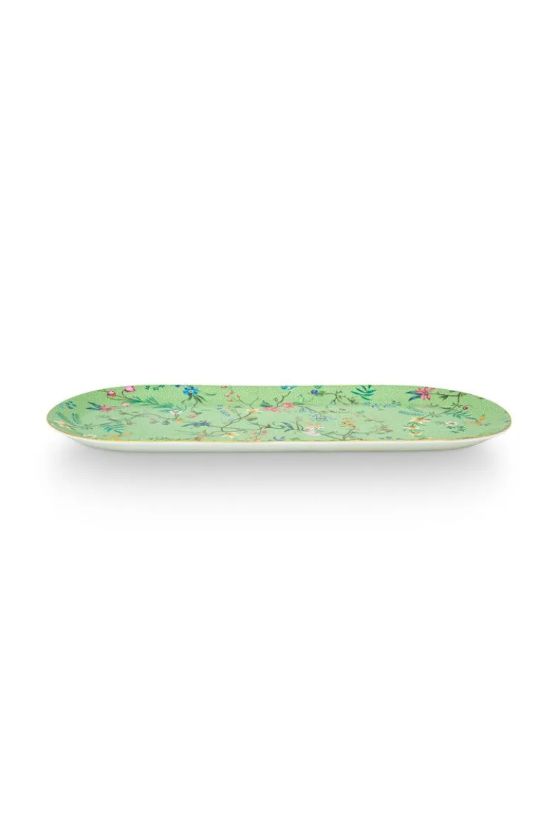 Dit Groene Rechthoekige Taartplateau Is Versierd Met Verschillende Kleurrijke Bloemen. Het Brengt Je Naar Een Happy Place En Is Perfect Te Gebruiken Bij Een High Tea Met Vrienden. Het Taartplateau Is Ideaal Om Kleine Hapjes Op Te Serveren, Of Te Gebruiken Als Schaal Voor In Je Melkkan En Suikerpot. Bekijk De Rest Van De Jolie-Collectie Voor Inspiratie Om Te Combineren.