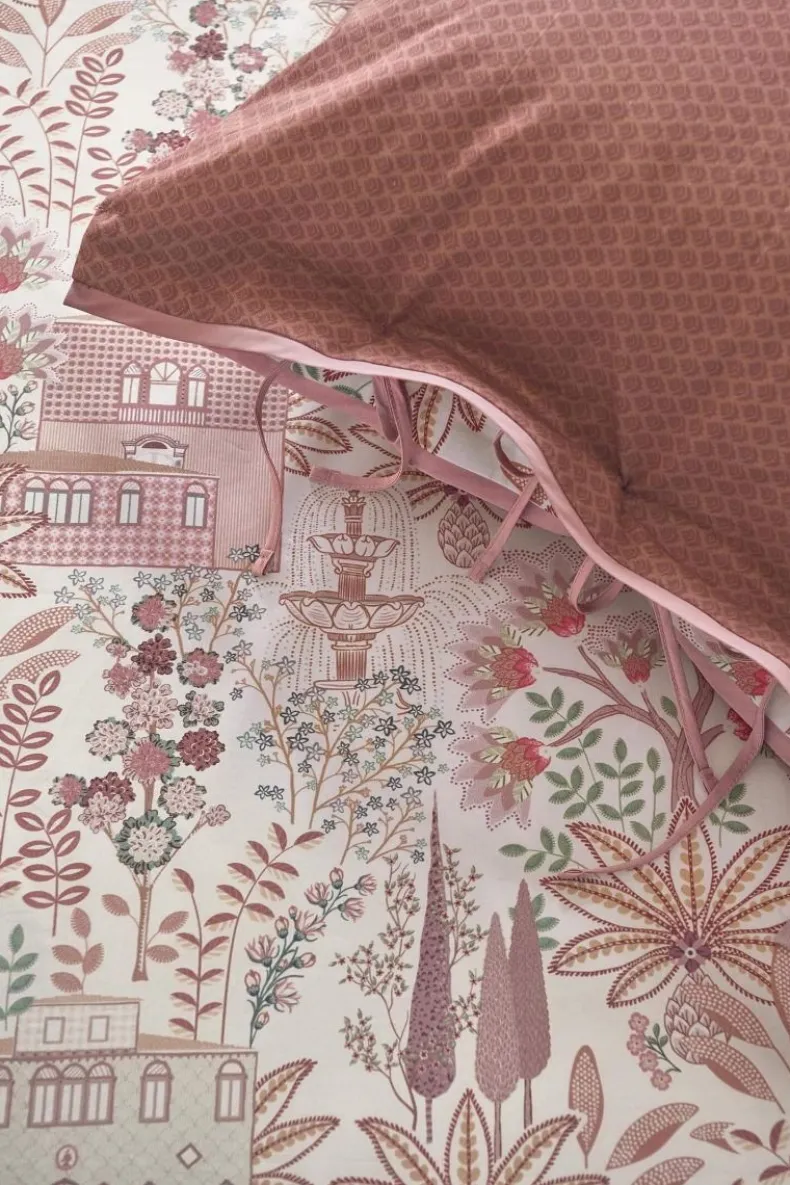 Het Casa Di Pip Kussensloop Heeft Een Vrolijke Print Met Verschillende Gedecoreerde Italiaanse Huizen. De Huizen Zijn Omgeven Door Cipressen, Vijgenbomen En Sierlijke Fonteinen.