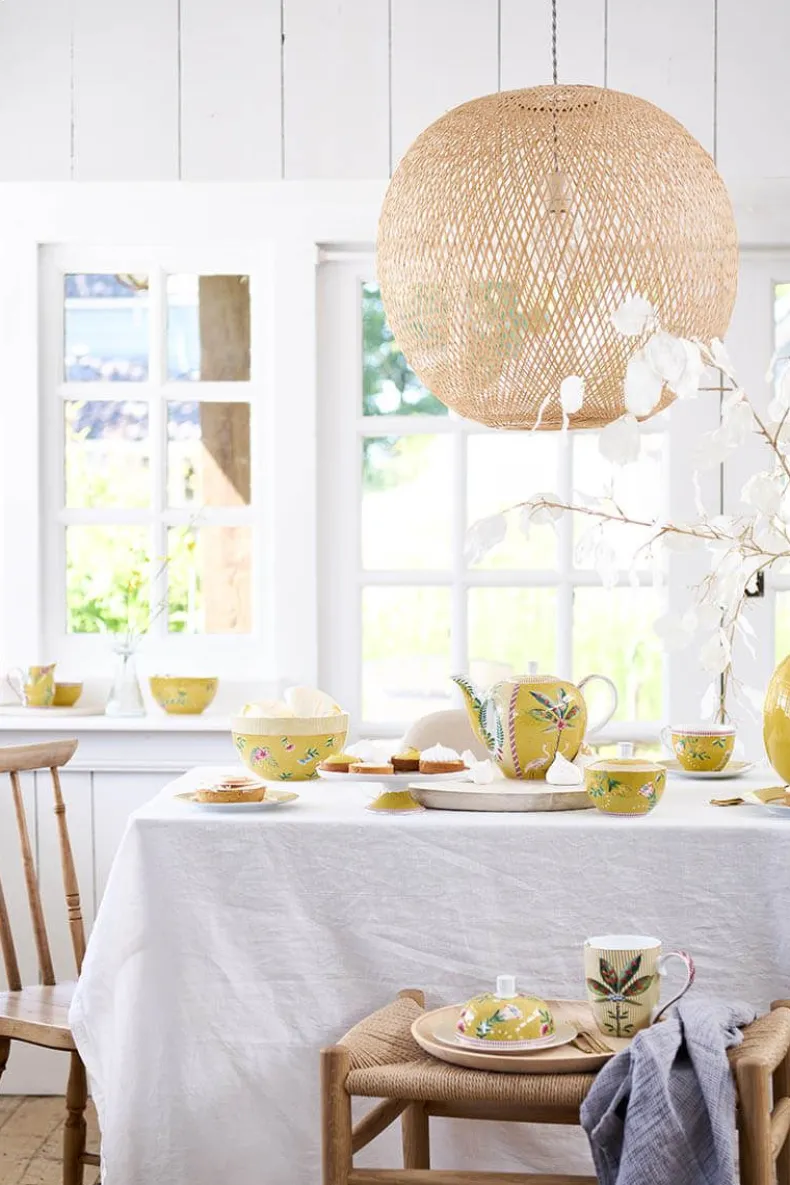 Deze La Majorelle Botervloot Is Versierd Met Exotische Bloemen Op Een Gele Achtergrond.