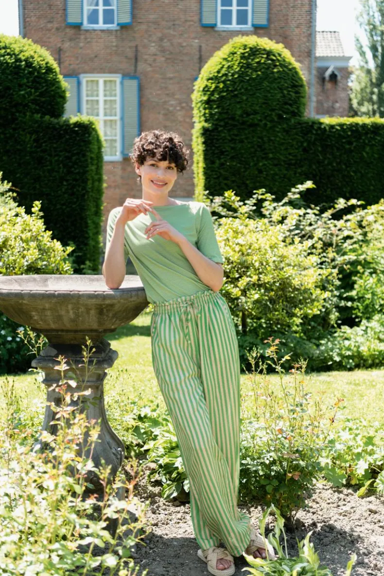 Comfortabel En Zacht, Deze Lange, Groene, Bernice Broek Uit Onze Nieuwe Homewear Collectie. Gedecoreerd Met Het Vrolijke Sumo Stripe Dessin Waarin Verticale Strepen De Hoofdrol Spelen. De Taille Is Elastisch En Heeft Een Koord Rondom Voor Ultiem Comfort. Mix & Match Deze Broek Met De Vrolijke Prints En Comfortabele Items Uit Onze Nieuwste Homewear Collectie En Creeer Een Prachtige Outfit.