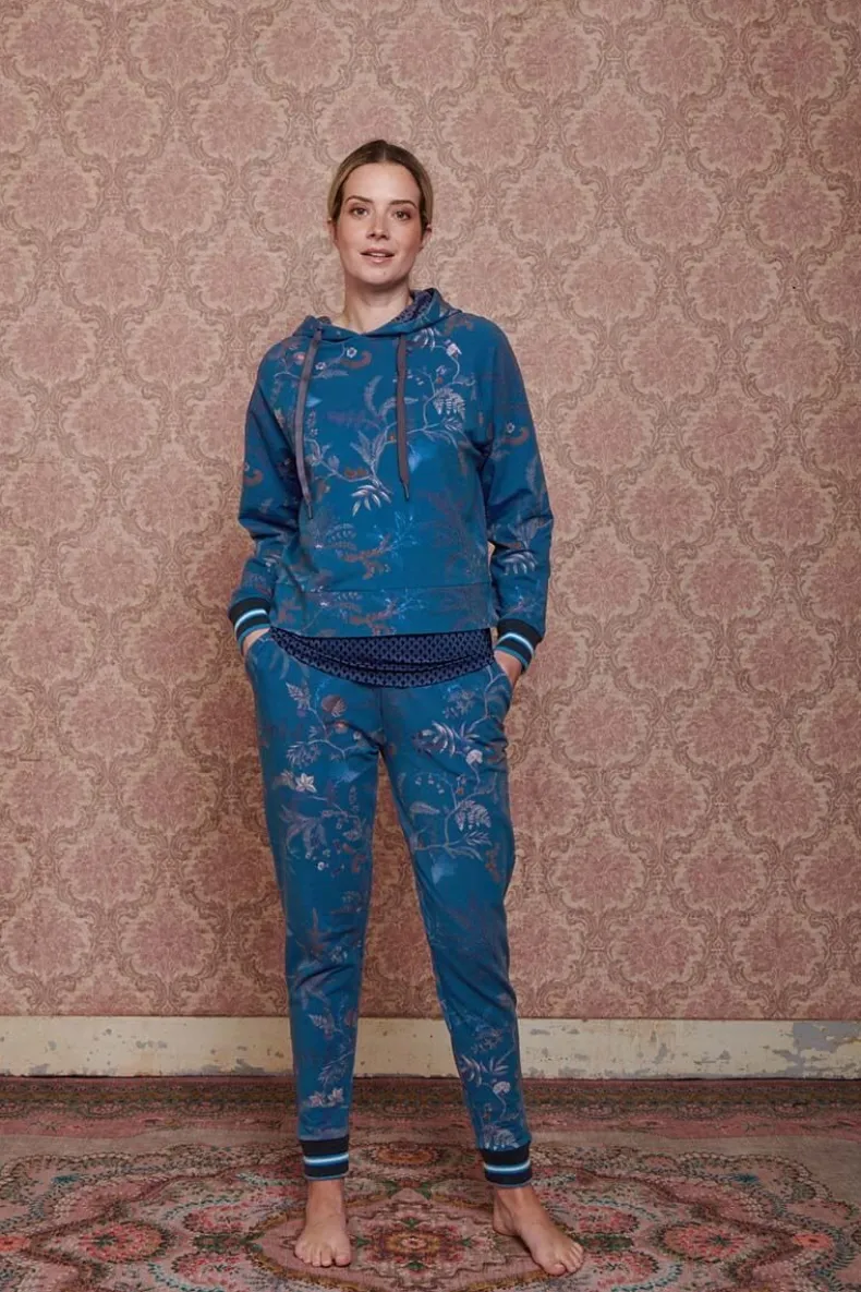 Deze Lange Sportbroek In Het Blauw Is Uitgevoerd Met Het Vrolijke Isola Dessin. De Sportbroek Heeft Een Verfijnde Print Van Meerkleurige Takjes En Varens. De Kleuren Van De Broek Zijn Zacht Met Subtiele Kleuraccenten. De Taille Is Elastische Stof Voor Een Comfortabele En Flaterende Fit.