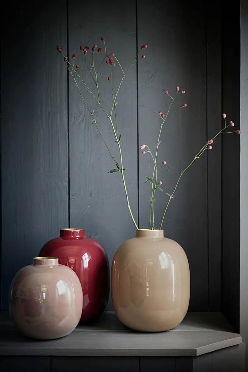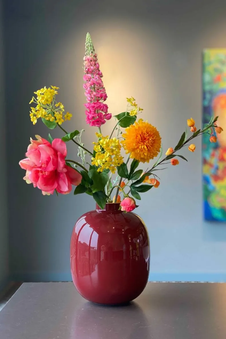 Geef Je Huis Een Kleurtje Met Deze Donker Rode Metalen Vaas. Deze Vaas Laat Elk Boeket Bloemen Er Prachtig Uitzien. Mix & Match Deze Vaas Met Een Van Onze Pip Bloemen En Creeer Een Echte Blikvanger In Huis. Is Je Interieur Toe Aan Een Complete Make-Over? Bekijk Dan Onze Hele Wooncollectie. Alle Items Zijn Gemakkelijk Te Combineren Met Deze Stijvolle Vaas.