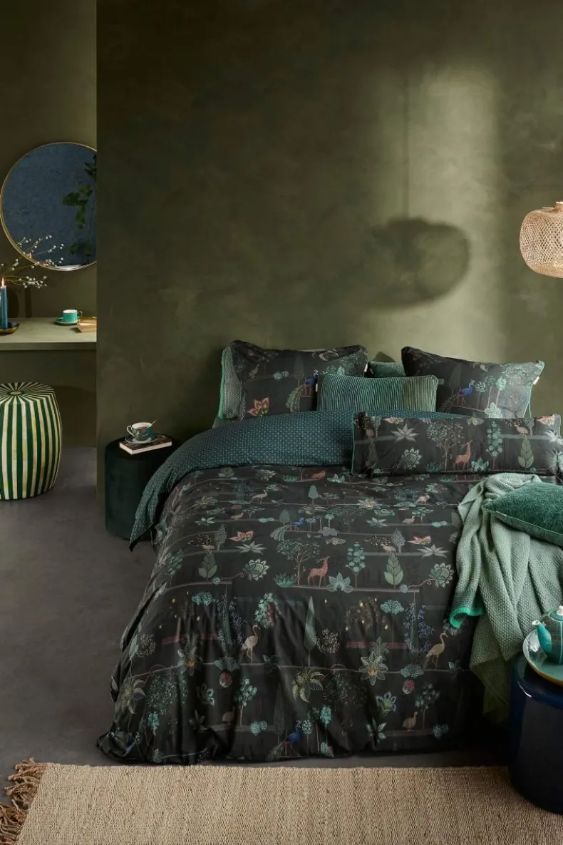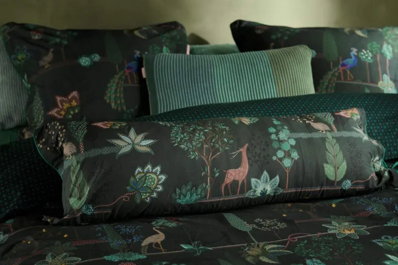 Het Sierkussen Alberi Heeft Een Prachtige Landschapsprint Die Vol Zit Met Verrassende Details, Waaronder Een Hert In Het Midden. Het Sierkussen Heeft Aan Een Zijde Een Doorgestikte Oxford Rand Met Een Unieke Striksluiting. De Achterkant Heeft Een Kleine Geometrische Print, Waardoor Het Kussen Tweezijdig Gebruikt Kan Worden.