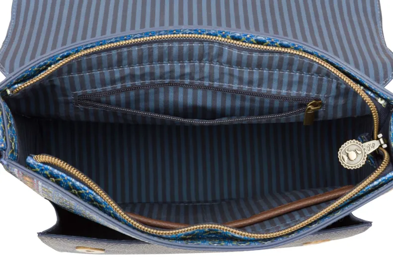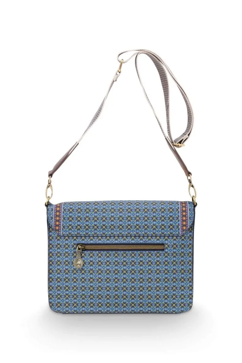 Ga De Deur Uit In Stijl Met Deze Blauwe Schoudertas Uit De Clover Collectie. De Schoudertas Is Versierd Met Een Herhaald Dessin Van Gestilleerd Klaveretjes En Heeft Naast Een Groot Opbergvak Ook Een Klein Vakje Aan De Voor- En Achterkant Waarin Je Jouw Belangrijke Spullen Kunt Opbergen Zoals Je Telefoon Of Sleutels.