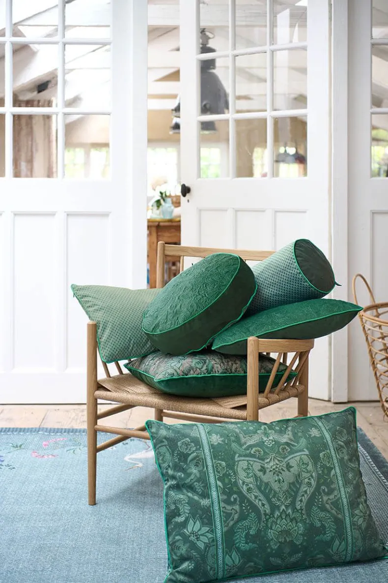 Dit Sierkussen Bevat Het Vrolijke Kyoto Festival Dessin. Het Herhaalde Bloemdessin Is Opgebouwd Uit Een Variatie Van Fantasierijke Chintz Bloemen En Bladeren. De Achterkant Van Het Kussen Is Gedecoreerd Met Het Elegante Suki Dessin. Het Suki Dessin Bestaat Uit Speels Geplaatste Boogjes Die Over Heel Dessin Zijn Geplaatst. Het Sierkussen Is Velvet, Dus Extra Zacht. Mix And Match Met Andere Kyoto Festival En Suki Producten En Maak Je Huis Een Beetje Meer Pip!