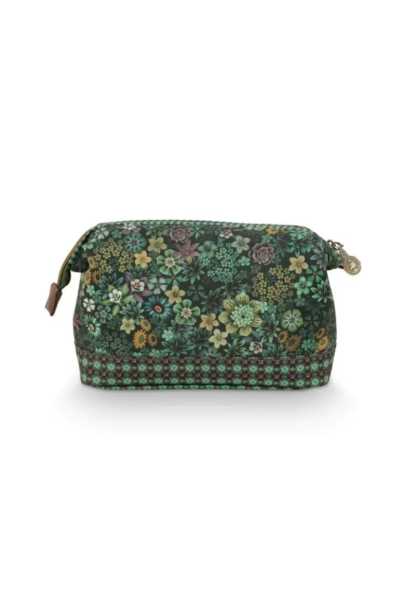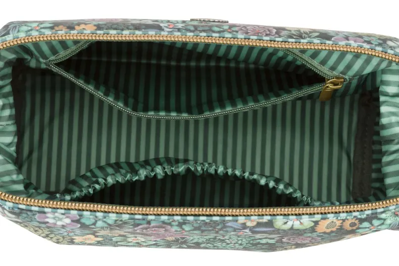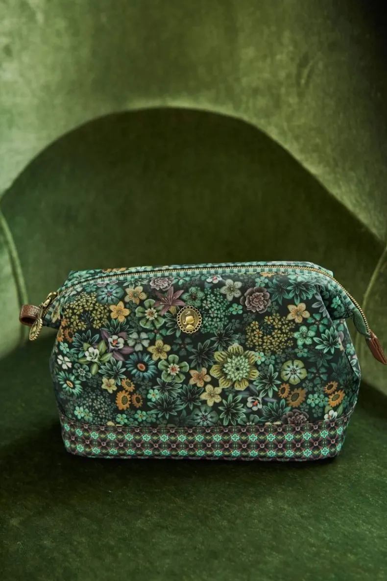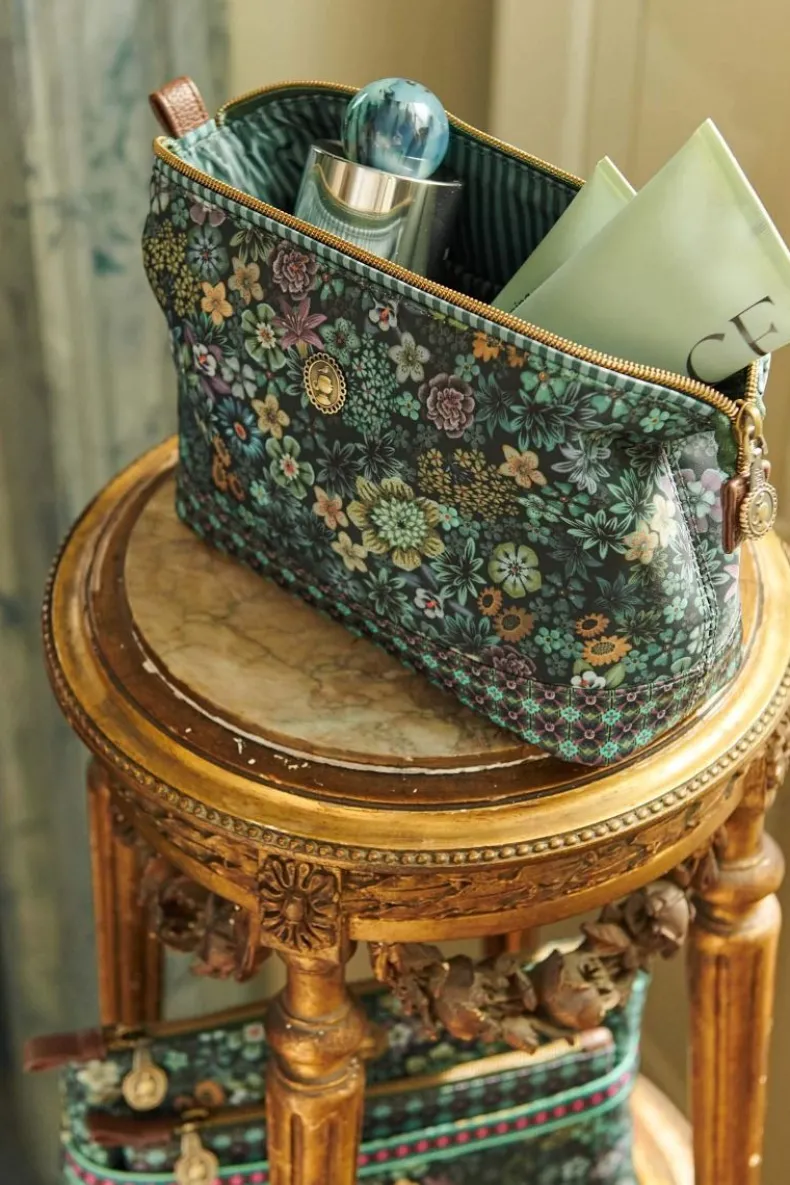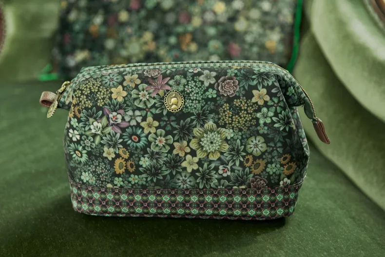 Met Deze Groene Toilettas Uit De Tutti I Fiori Collectie Heb Je Jouw Favoriete Verzorgingsproducten Altijd Binnen Handbereik. De Toilettas Is Versierd Met Met Een Unieke Variatie Van Fantasierijke Bloemen Heeft Aan De Onderkant Een Klavertjes Dessin. De Toilettas Heeft Een Groot Vak En Meerdere Kleine Vakjes En Is Aan De Binnenkant Afgewerkt Met Een Gestilleerd Dessin.