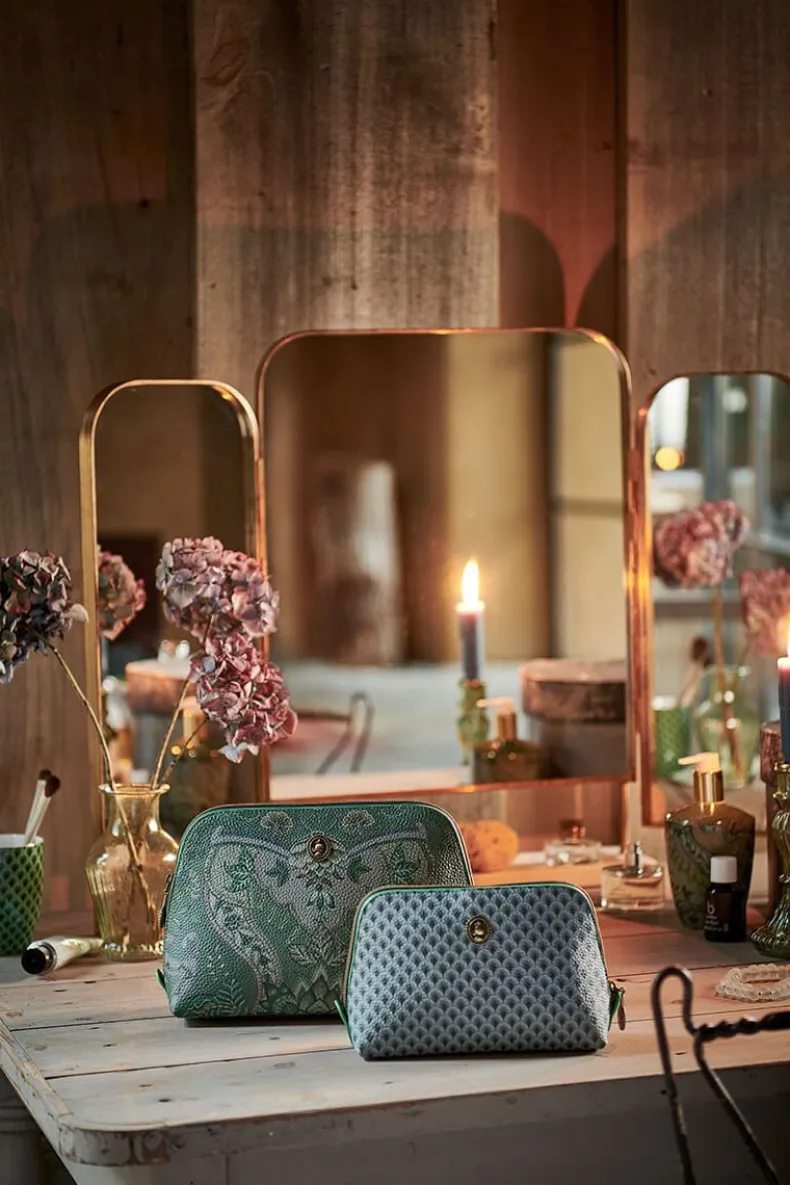 Met Deze Toilettas Uit De Kyoto Festival Collectie Heb Je Jouw Favoriete Verzorgingsproducten Altijd Binnen Handbereik. De Toilettas Is Versierd Met Met Een Unieke Variatie Van Fantasierijke Chintzbloemen En Bladeren En Bestaat Uit Twee Vakken En Verschillende Kleine Vakjes. De Binnenkant Is Afgewerkt Met Een Dessin Van Gestileerde Boogjes.