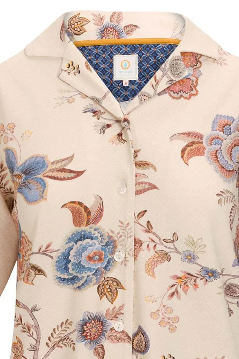Voel Je Uitgerust En Word Heerlijk Wakker In Deze Witte Pyjamatop Met Cece Fiore Dessin. Het Is Een Pyjamatop Met Korte Mouwen En Inkepingskraag, Gemaakt Van Een Geweven Glanzende Viscose Stof Met Een Oversizede Pasvorm. Combineer Deze Top Mooi Met Een Broek Of Short In Dezelfde Print Om Hem Als Complete Set Te Dragen. Of Mix En Match De Top Met Andere Items Uit De Nieuwe Homewear Collectie.