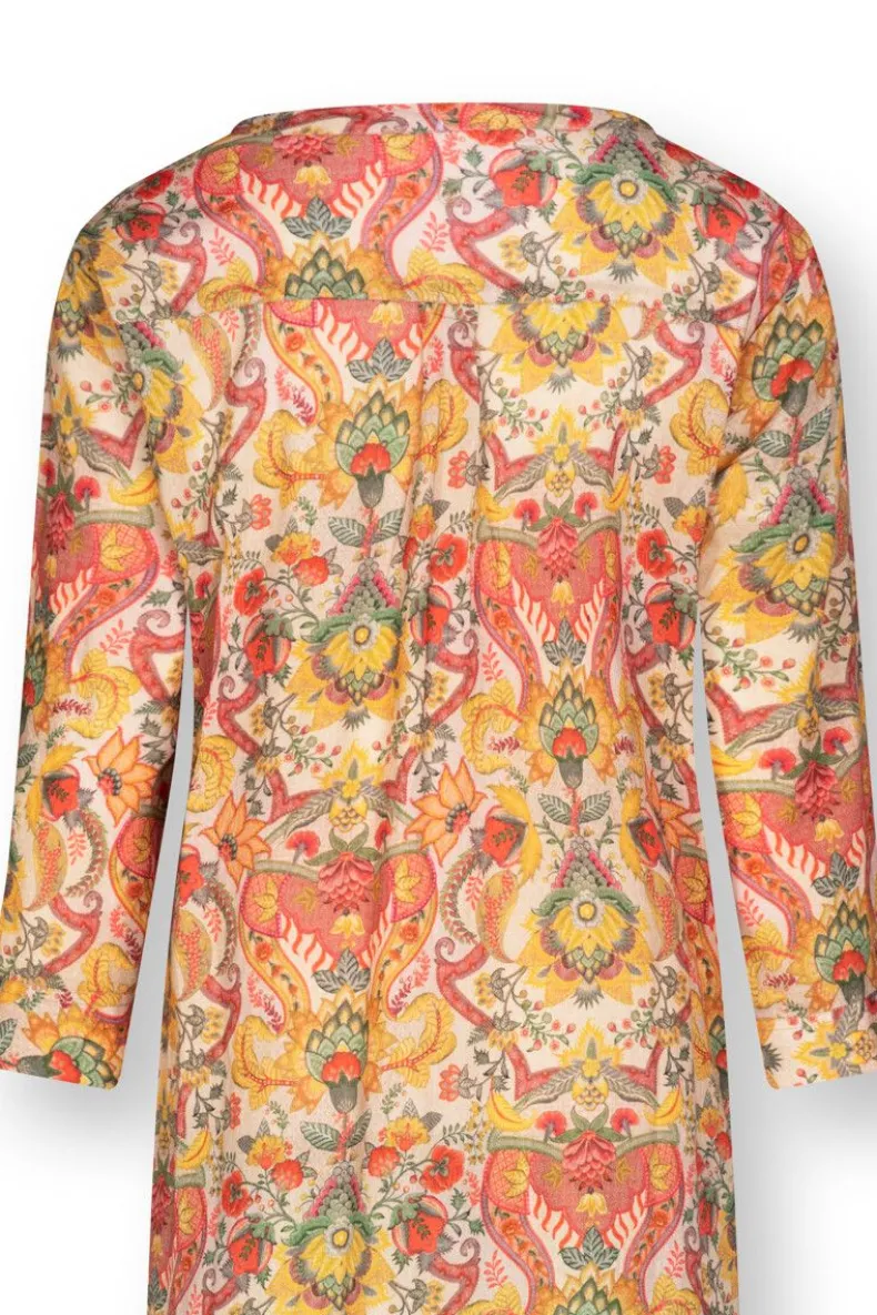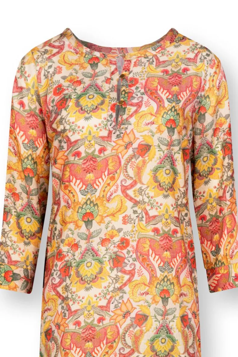 Verrijk Je Garderobe En Waan Jezelf In Een Wereld Vol Vrolijke Kleuren Met Deze Gele Dania Tuniek. Gedecoreerd Met De Prachtige Kyoto Festival Print. Dit Herhaalde Bloemdessin Is Opgebouwd Uit Een Variatie Van Fantasierijke Chintzbloemen En Bladeren. Symmetrisch Geplaatste Bloementakken Met Uitgewerkte Decoratieve Bloemen Geven Deze Tuniek Een Luxe Uitstraling. Onze Comfortabele Tuniek Is Gemaakt Van Viscose En Katoen Wat Ervoor Zorgt Dat Erg Zacht Aan Zal Voelen. Mix En Match Onze Tuniek Met Verschillende Accessoires Uit De Nieuwste Collectie Voor Een Prachtige Uitstraling.