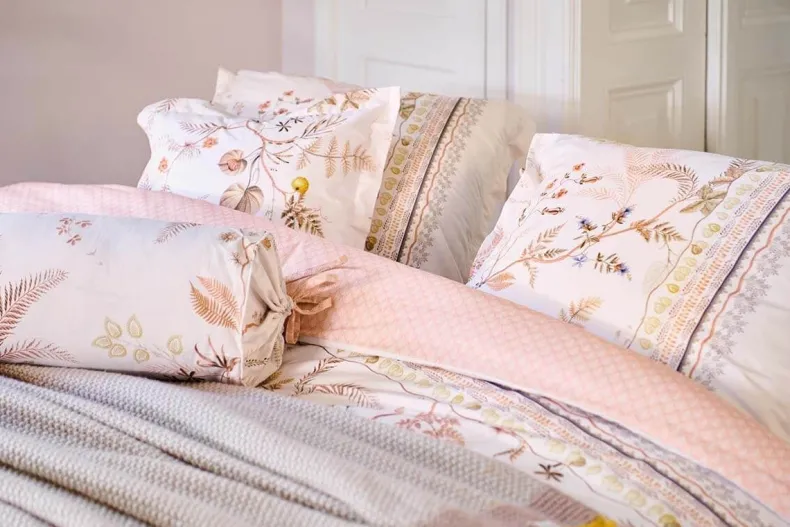 Het Vierkante Salento Kussen Bestaat Uit Wuivende Palmbomen En Varens Met Silhouetten Van De Bladeren In De Ondergrond. De Achterkant Heeft Een Patroon Van Gestileerde Schelpjes. Het Sierkussen Heeft Een Doorgestikte Oxford Rand Aan De Zijkanten, Dit Geeft Een Luxe Uitstraling. Het Kussen Kun Je Tweezijdig Gebruiken, Zo Creeer Je Een Speels Mix & Match Effect Op Je Bed.