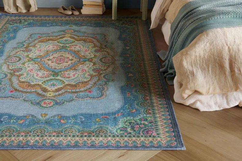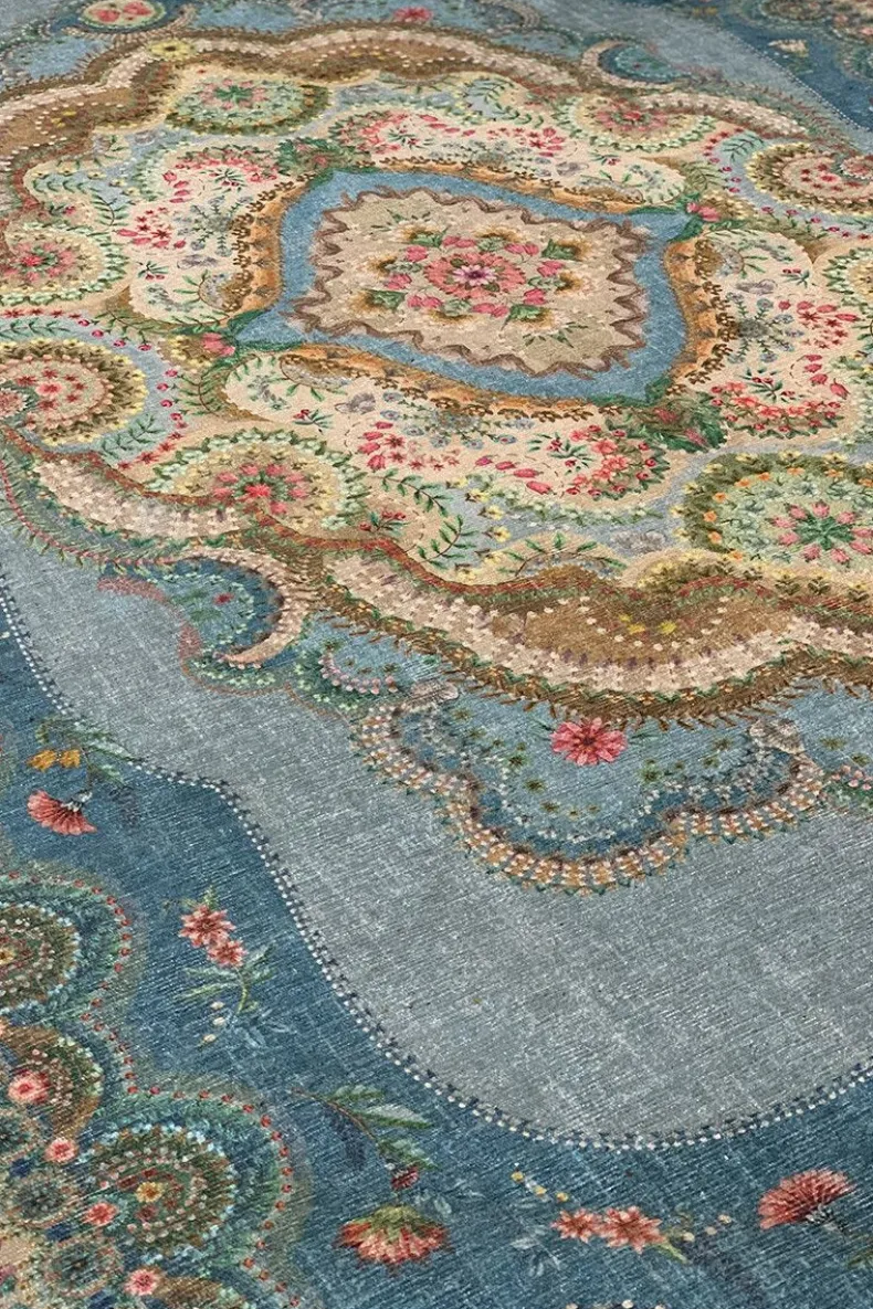 Het Majorelle By Pip Blauw Tapijt Is Geinspireerd Door Antieke En Traditionele Vloerkleden En Kreeg Een Pip Make-Over Met Een Gedetailleerd Dessin. Kleurige Bloemen Op Een Zacht Gekleurde Ondergrond Geven Het Tapijt Een Vintage Uitstraling Met Een Eigentijdse Twist. De Tapijten Worden Opgevouwen Geleverd, Waardoor Deze Bij Leveringen Vouwen Bevat. Deze Vouwen Zullen Binnen Een Paar Weken Geleidelijk Verdwijnen. Het Kleed Is Geprint En Heeft Een Authentieke Vintage Look.