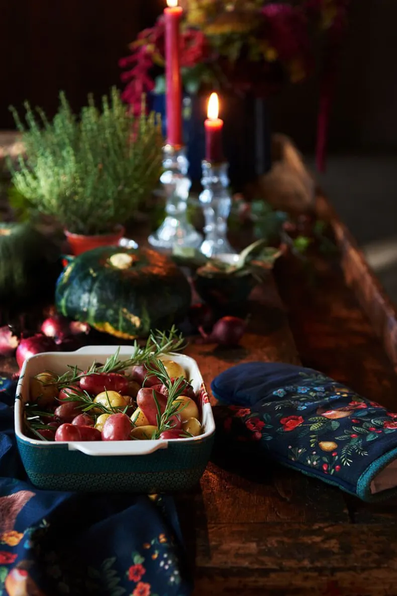 Bak Je Gerechten In Winterse Stijl Met Deze Grote Ovenschaal Uit De Winter Wonderland Collectie. De Ovenschaal Is Gedecoreerd Met Winterse Elementen, Een Roodborstje En Een Haas.