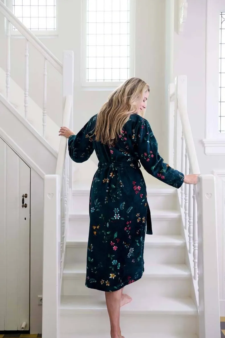 Wikkel Jezelf In Deze Donkerblauwe Les Fleurs Badjas Met Kleine Gedecoreerde Fantasiebloemen. Deze Les Fleurs Badjas Is Fijn Om Te Dragen In De Ochtend, Maar Ook Heerlijk Om De Dag Mee Af Te Sluiten. De Binnenkant Van De Badjas Heeft Een Effen Kleur. De Badjas Heeft Een Mooi Aansluitende Doorgestikte Kraag, Steekzakken En Sluit Je Met Een Lang Ceintuur. De Les Fleurs Badjas Past Goed Bij Andere Items Uit De Collectie, Waardoor Er Een Leuk Mix & Match Effect Onstaat In Je Badkamer. De Les Fleurs Badjas Is Gemaakt Van 100% Hoogwaardige Katoen Terry Velours Met Een Kwaliteit Van 380 Gr/M2. Hierdoor Voelt De Badjas Super Zacht En Stevig Aan. Door Het Hoogwaardige Materiaal Heeft Uitstekende Vochtabsorberende, Ademende En Sneldrogende Kwaliteiten. Een Badjas Om Verliefd Op Te Worden!