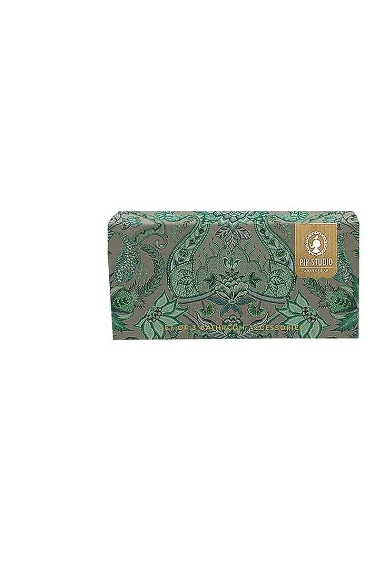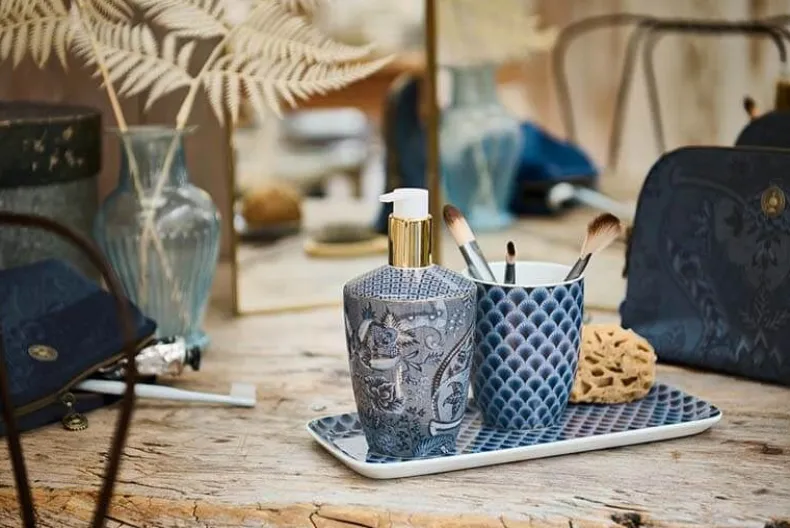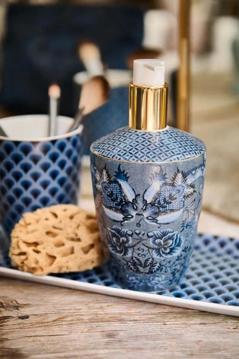 Maak Je Badkamer Compleet Met Deze Badkamer Set Uit De Kyoto Festival Collectie. De Set Bestaat Uit Drinkbeker, Zeeppompje En Een Badkamerschaal En Is Gedecoreerd Met Een Dessin Van Gestileerde Boogjes En Een Variatie Van Fantasierijke Chintzbloemen En Bladeren. In Deze Set Komen De Suki En Kyoto Festival Dessins Samen.