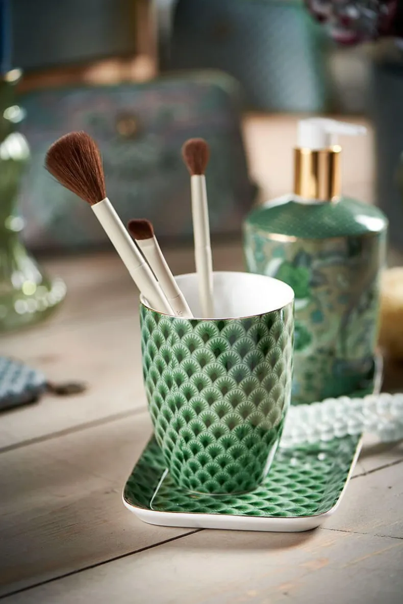 Maak Je Badkamer Compleet Met Deze Badkamer Set Uit De Kyoto Festival Collectie. De Set Bestaat Uit Drinkbeker, Zeeppompje En Een Badkamerschaal En Is Gedecoreerd Met Een Dessin Van Gestileerde Boogjes En Een Variatie Van Fantasierijke Chintzbloemen En Bladeren. In Deze Set Komen De Suki En Kyoto Festival Dessins Samen.