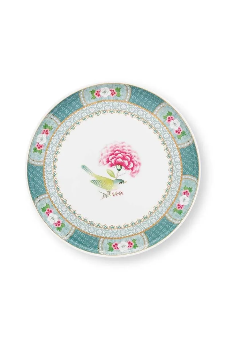 Zowel Het Bord Als De Voet Van Dit Ronde Blauwe Taartplateau Is Versierd Met Een Verfijnd Dessin, Exotische Bloemen, Een Vogel En Gouden Details. Vormt Een Mooie Combinatie Met De Gebaksbordjes En Het Koffie- En Theeservies Uit De Blushing Birds Collectie.