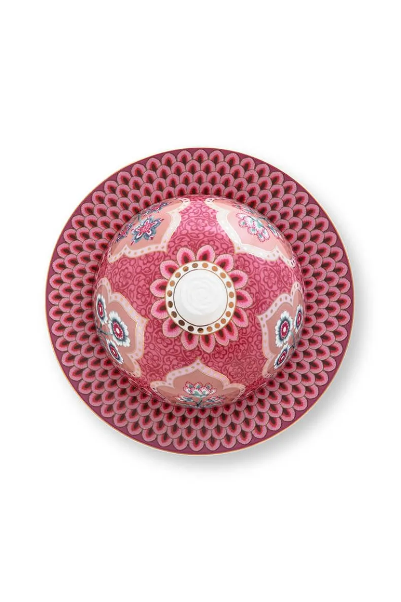Fleur Je Tafel Op Met Deze Botervloot Uit De Flower Festival Collectie. De Botervloot Heeft Een Bloemendessin Met Fantasierijke Rode En Roze Chintzbloemen Met Lichtblauwe En Groene Bladeren Gecombineerd Met Een Scallop Dessin.