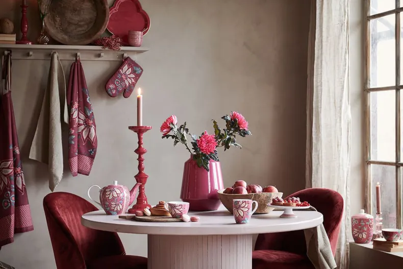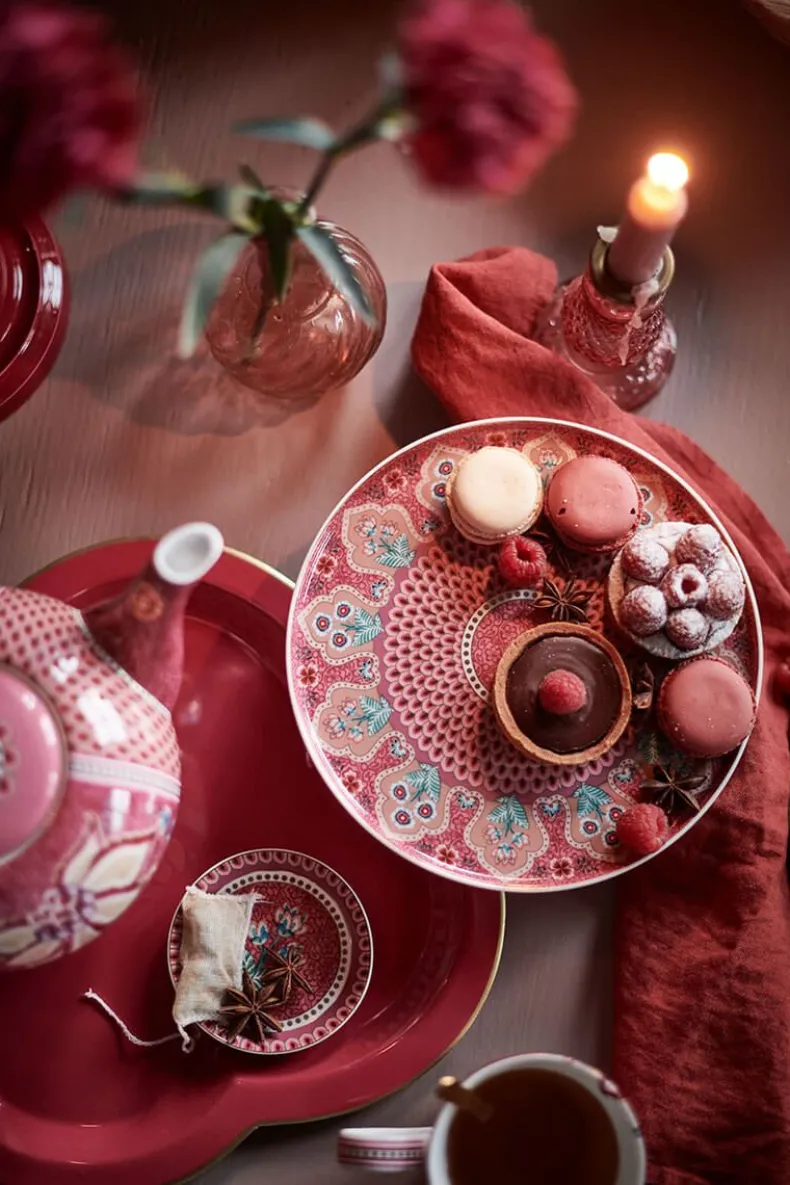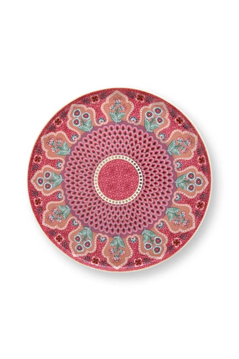 Serveer Je Lekkernijen Op Deze Taartplateau Uit De Flower Festival Collectie. De Plateau Heeft Een Bloemendessin Met Fantasierijke Rode En Roze Chintzbloemen Met Lichtblauwe En Groene Bladeren Gecombineerd Met Een Scallop Dessin.