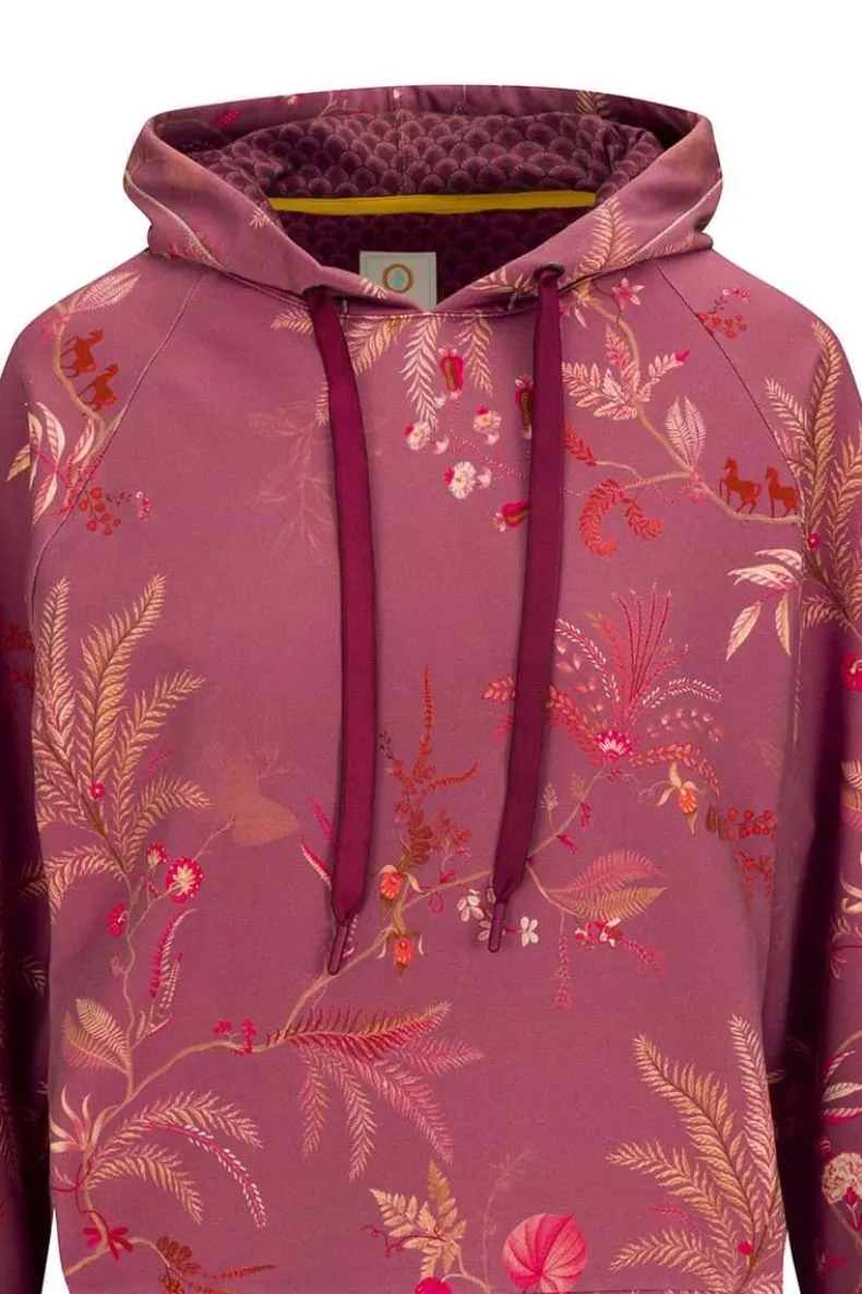 Deze Hoodie In De Kleur Roze Is Uitgevoerd Met Het Speelse Isola Dessin. De Print Is Opgebouwd Uit Een Verfijnde Print Van Meerkleurige Takjes En Varens. De Hoodie Bevat Een Capuchon En Bijpassende Touwtjes.