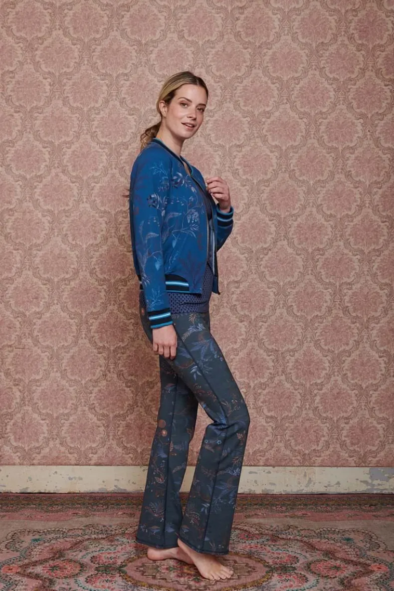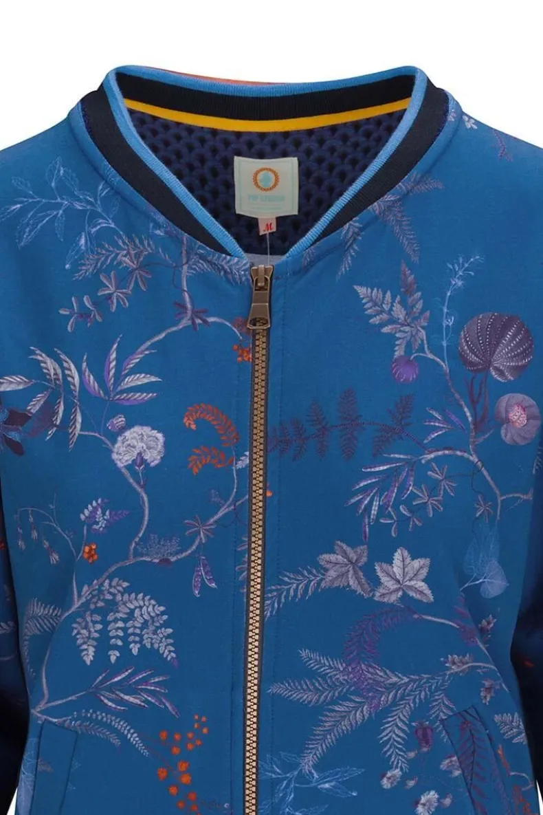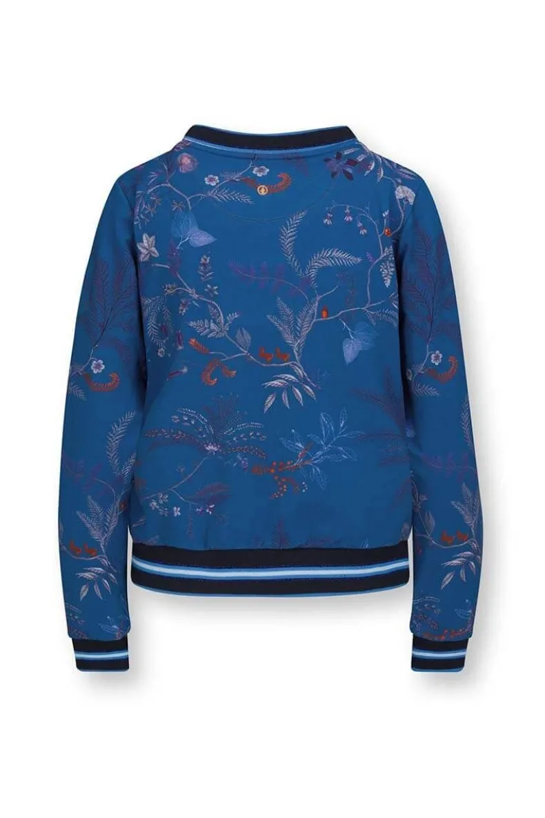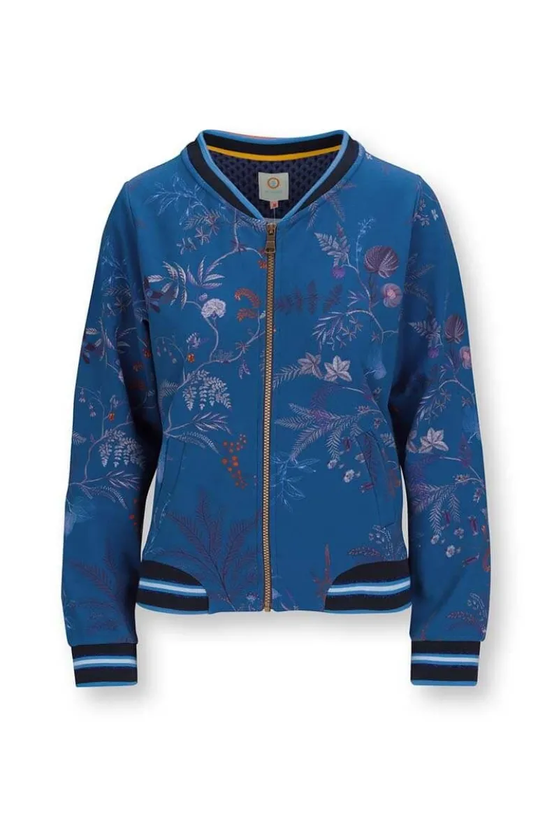 Deze Jas In De Kleur Blauw Is Uitgevoerd Met Het Speelse Isola Dessin. De Print Is Opgebouwd Uit Een Verfijnde Print Van Meerkleurige Takjes En Varens. De Biesjes Zijn Versierd Met Blauw En Witte Strepen Met Glitters.