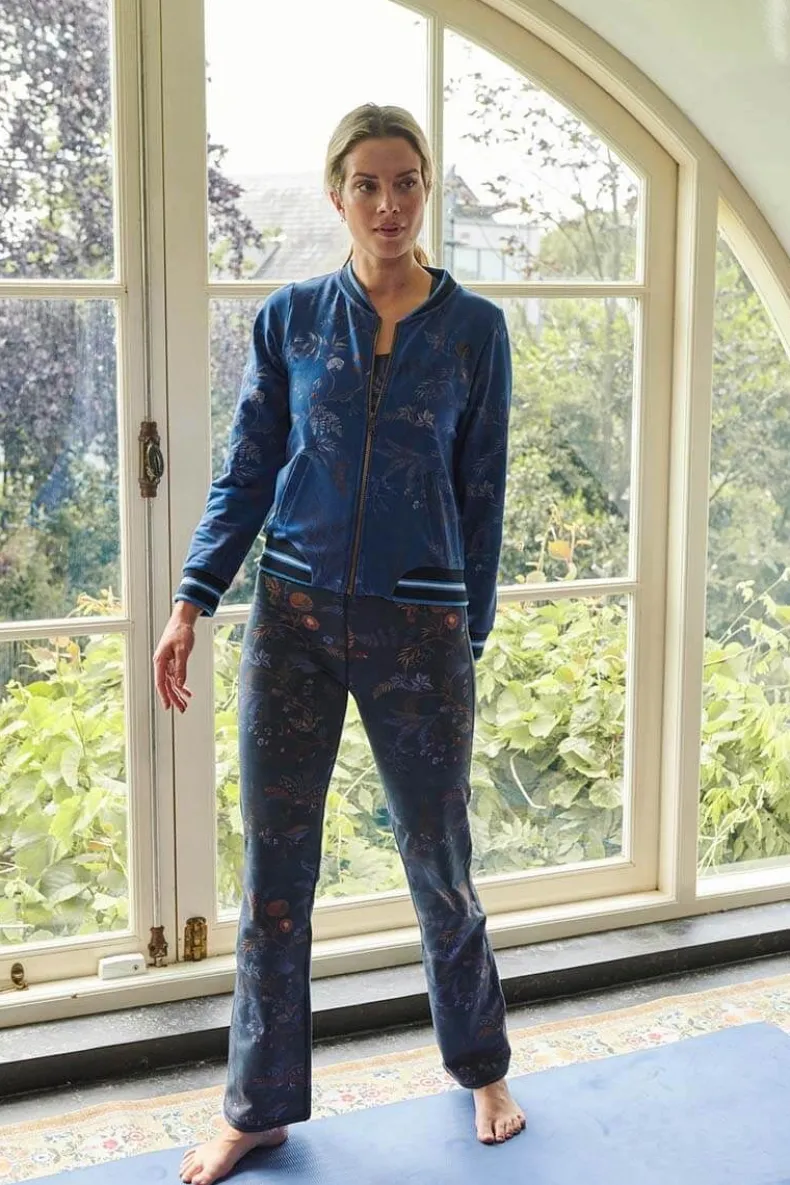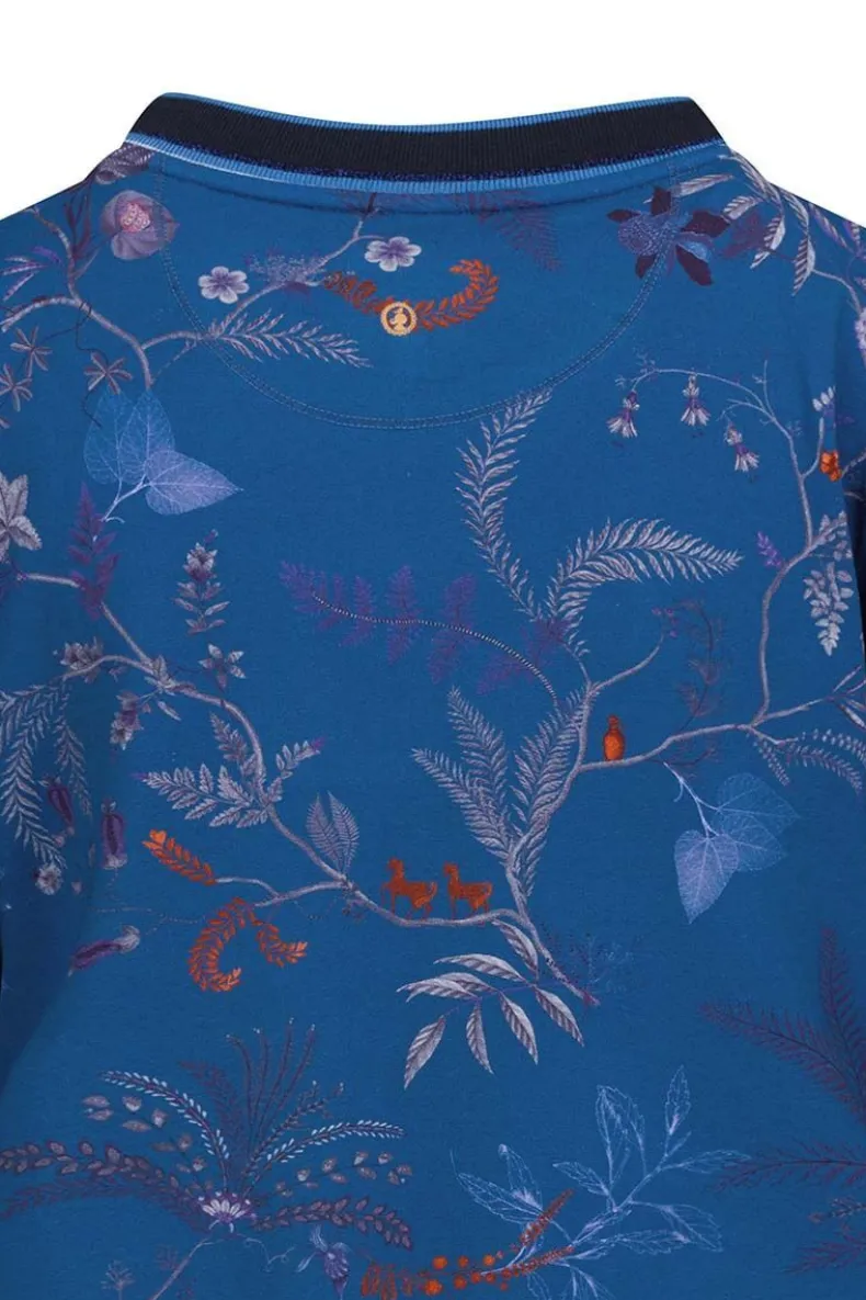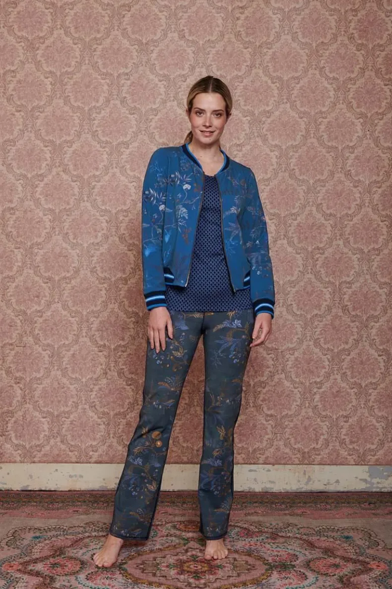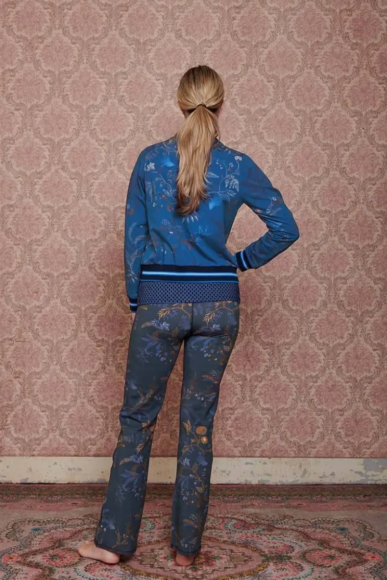 Deze Jas In De Kleur Blauw Is Uitgevoerd Met Het Speelse Isola Dessin. De Print Is Opgebouwd Uit Een Verfijnde Print Van Meerkleurige Takjes En Varens. De Biesjes Zijn Versierd Met Blauw En Witte Strepen Met Glitters.
