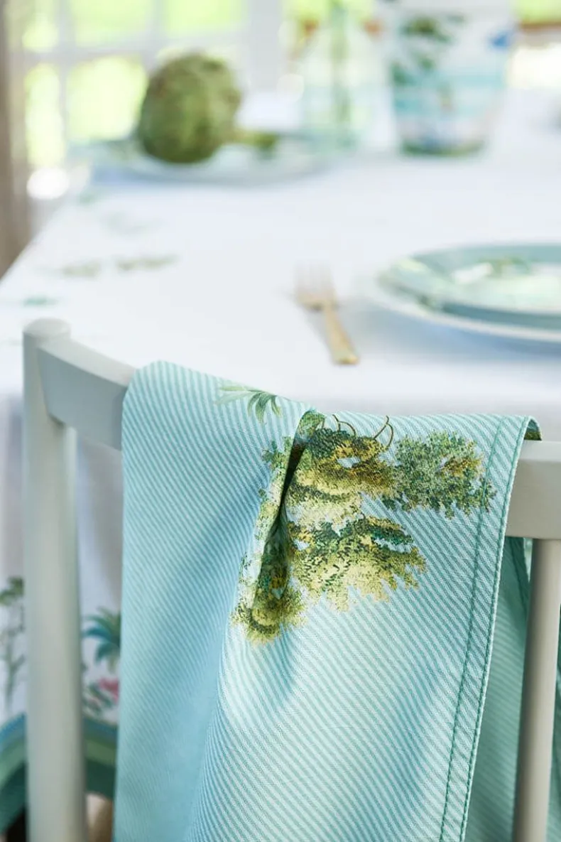 Deze Blauwe Theedoek Is Rijk Gedecoreerd En Versierd Met Unieke Bomen, Bloemen En Een Reiger Uit De Jolie Collectie. Mix And Match Met Het Jolie Tafelkleed, Om Het Een Mooi Geheel Te Maken.