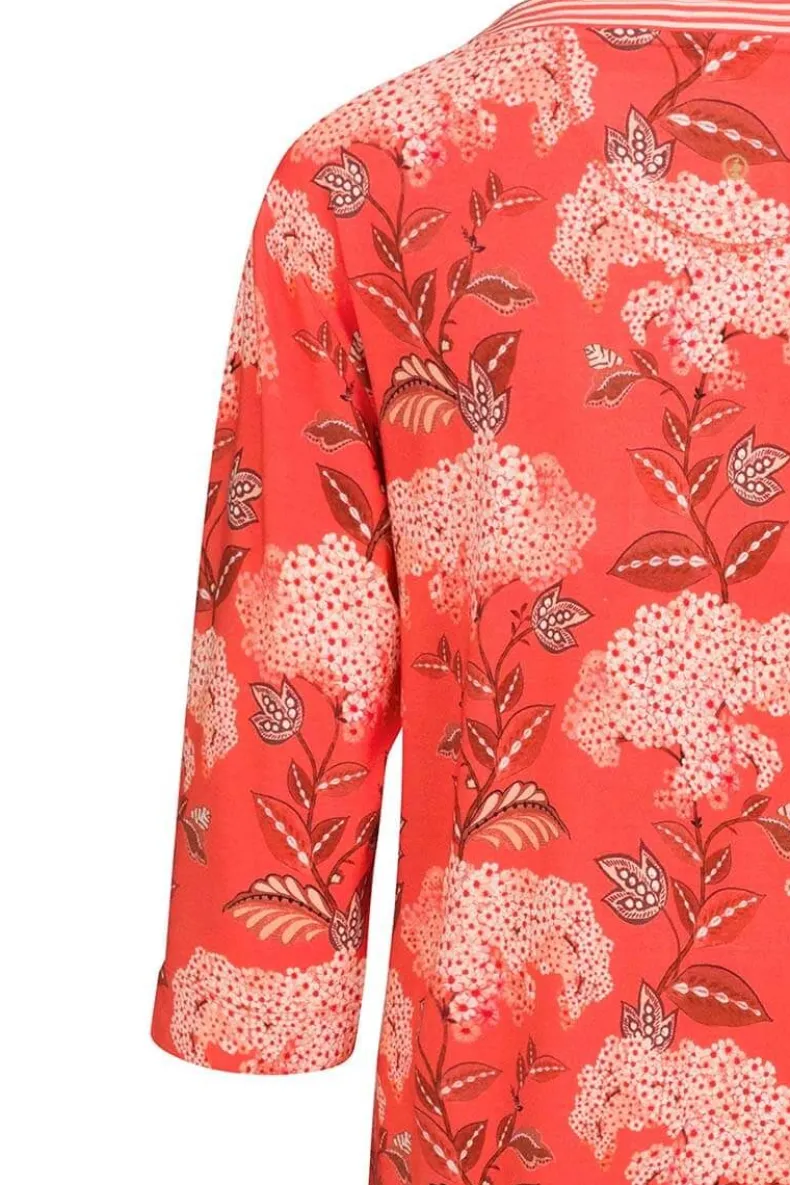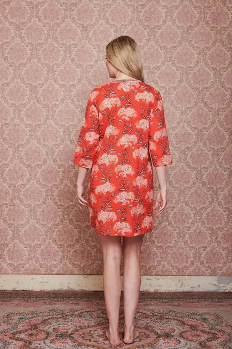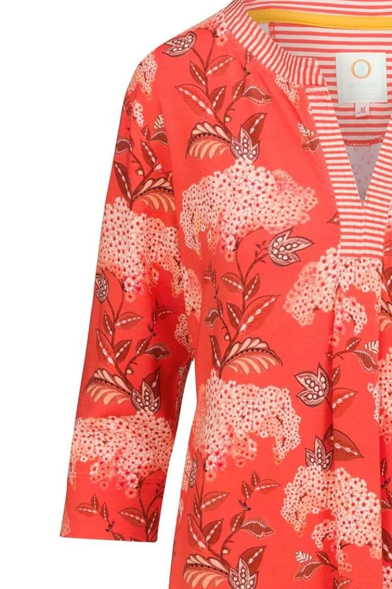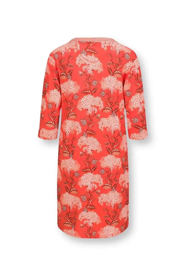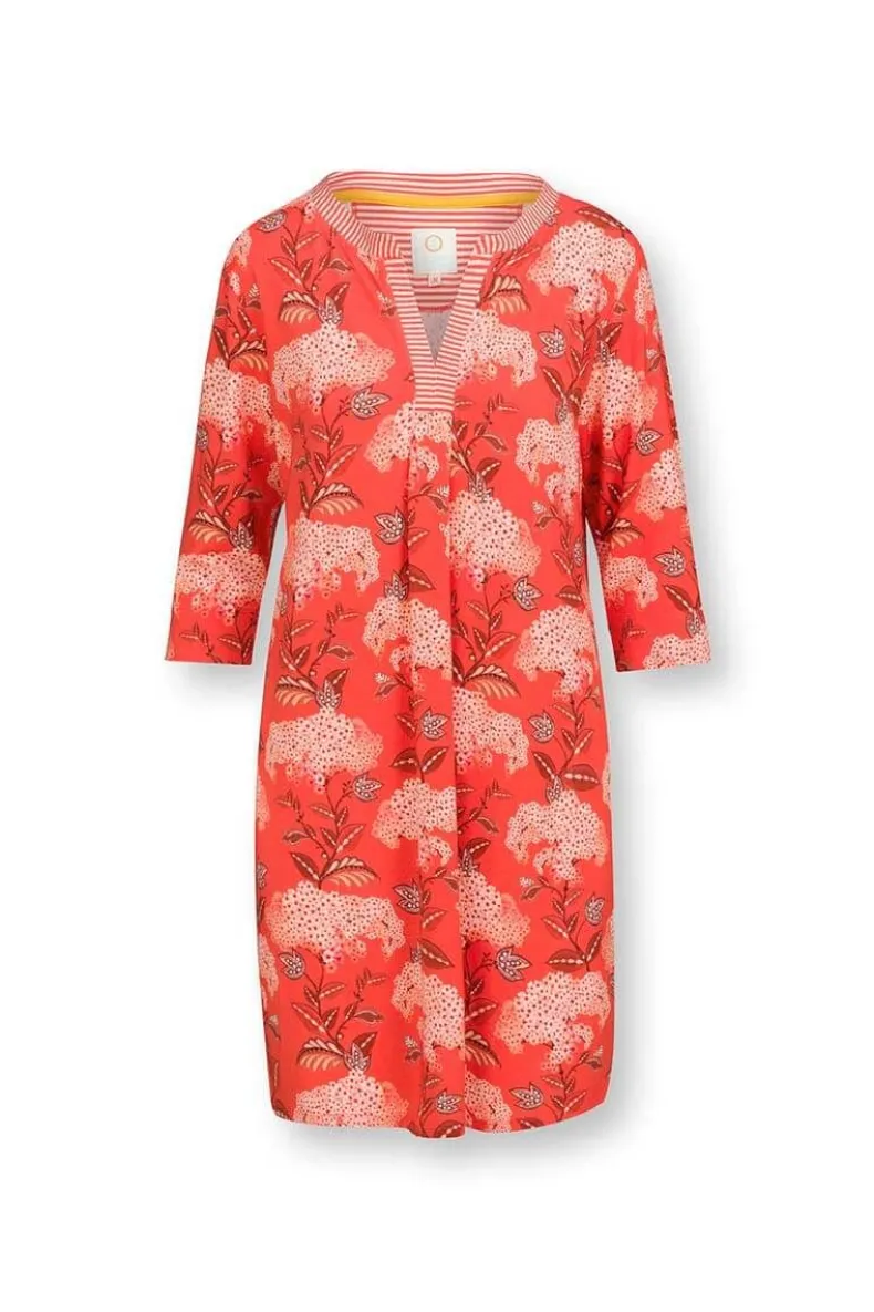 Een Gemakkelijk Te Dragen Kaftanjurk In De Prachtige Print Flora Firenze Met De Kleur Koraalroze. Gemaakt Van Zachte Katoenen Voile. De Hals Is Afgewerkt Met Het Little Sumo Stripe Dessin. Perfect Voor Vakanties Met Warm Weer Of Als Strandcover-Up Op Zonnige Stranddagen.