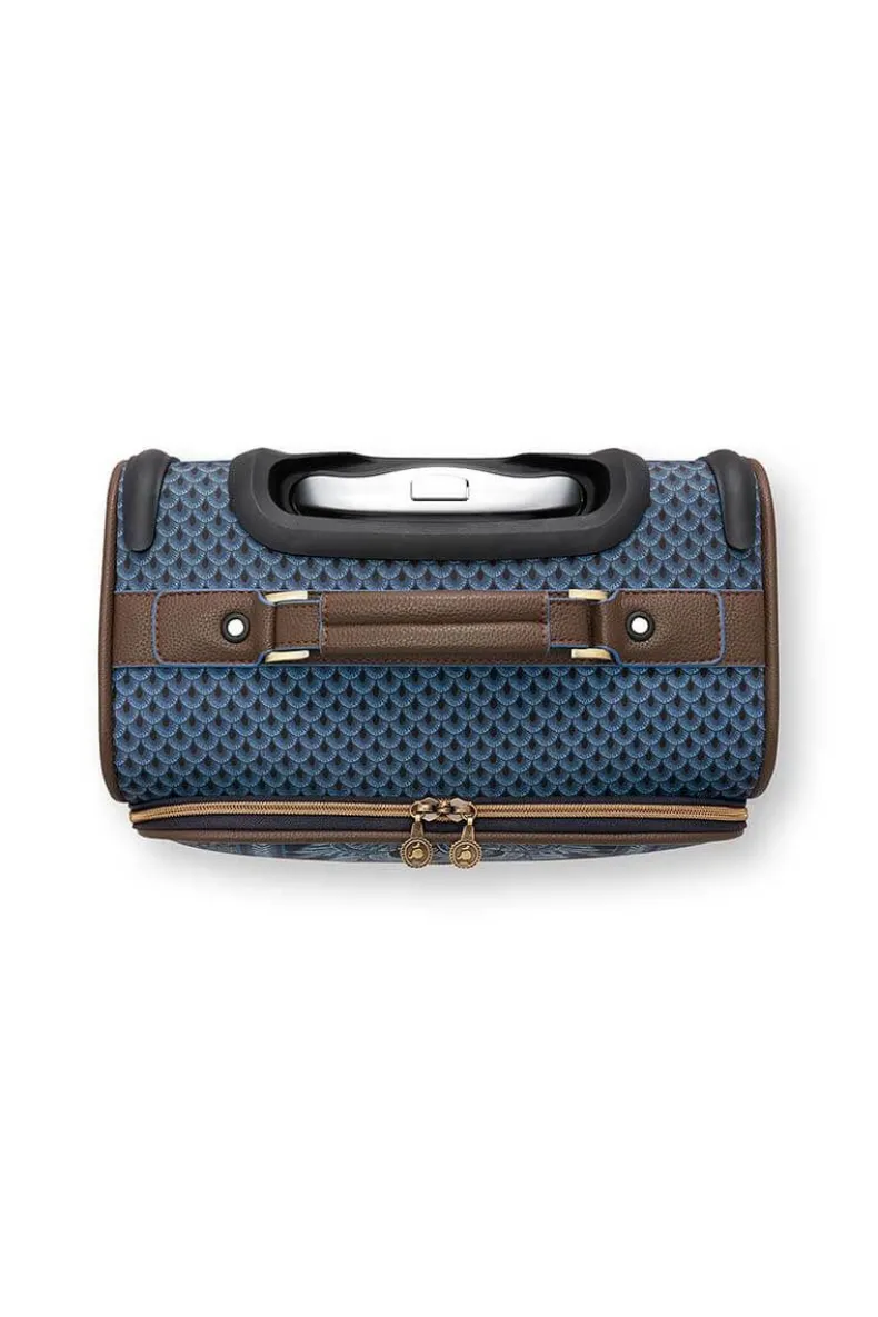 De Nieuwe Handbagage Koffer In De Kleur Indigo Blauw Met Het Kyoto Fesitval Dessin Is Een Geweldige Trolley Voor Op Reis. Deze Koffer Heeft Een Groot Opbergvak Voor Je Kleding En Schoenen, Waarin 3 Zijvakjes Te Vinden Zijn. Een Met Rits En Twee Met Elastische Band. De Koffer Is Waterafstotend Van Binnen En Buiten, Dus Perfect Voor Elke Weersvoorspelling. Onderop De Koffer Vindt Je 4 Wielen Die Elk 360 Graden Draaibaar Zijn. De Afmetingen Van De Koffer Maken Deze Geschikt Als Handbagage In Het Vliegtuig.