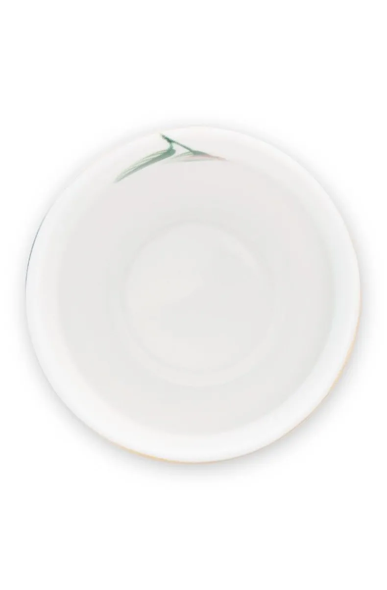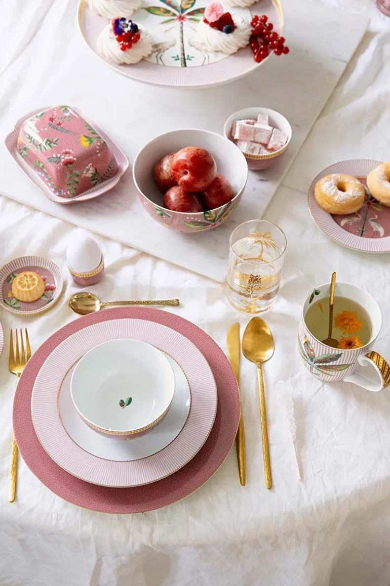 Dit Roze Eierdopje Is Versierd Met Een Verfijnde Roze Print. De Rand Heeft Een Geel-Wit Dessin.