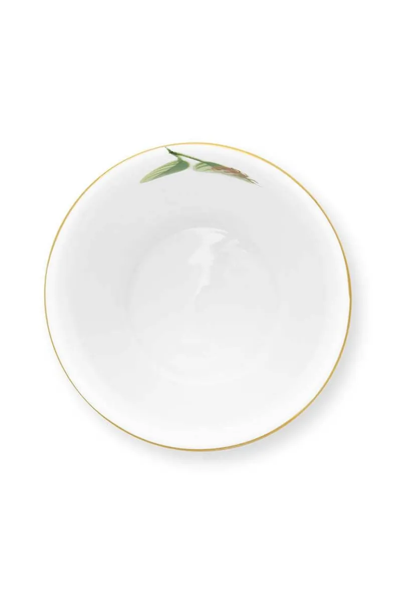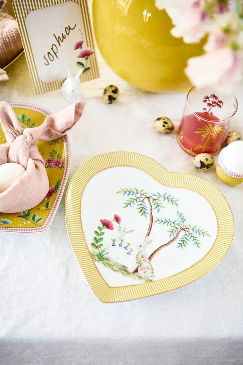 Dit Roze Eierdopje Is Versierd Met Een Verfijnde Gele Print. De Rand Heeft Een Roze-Wit Dessin.