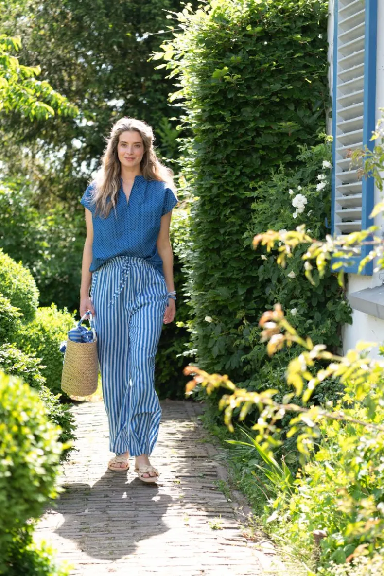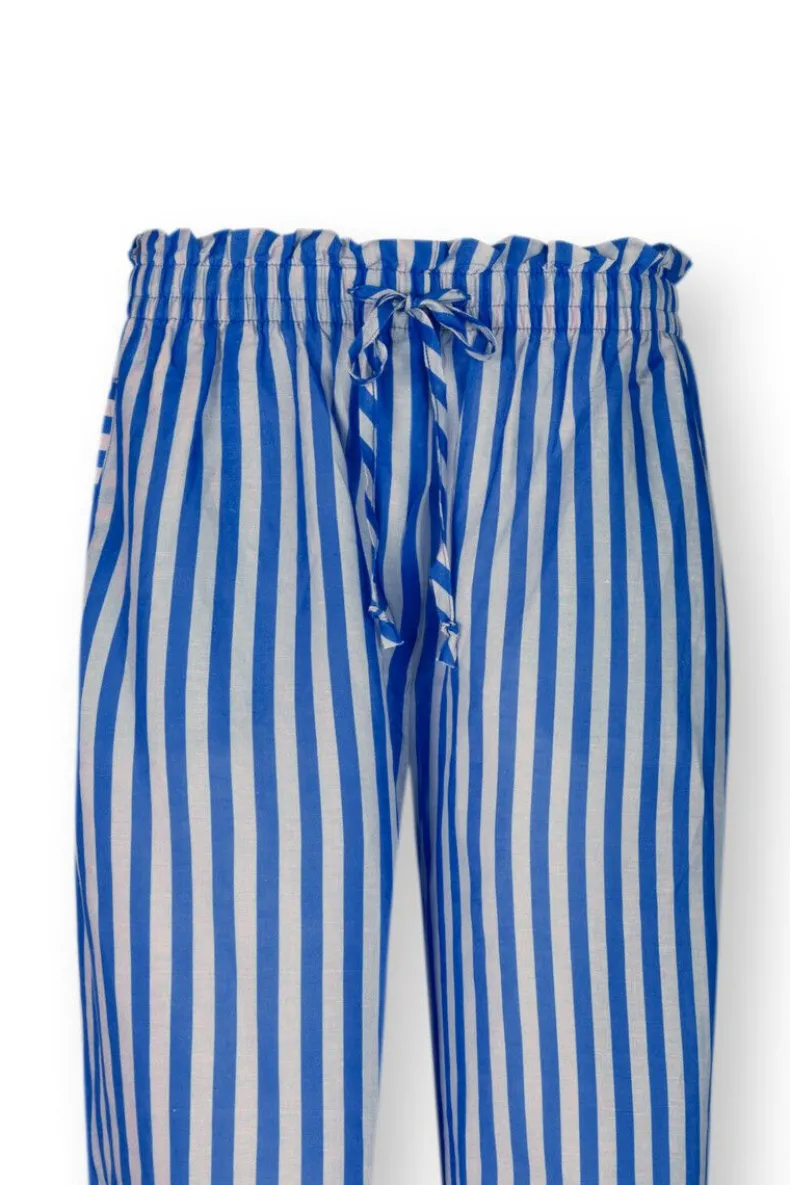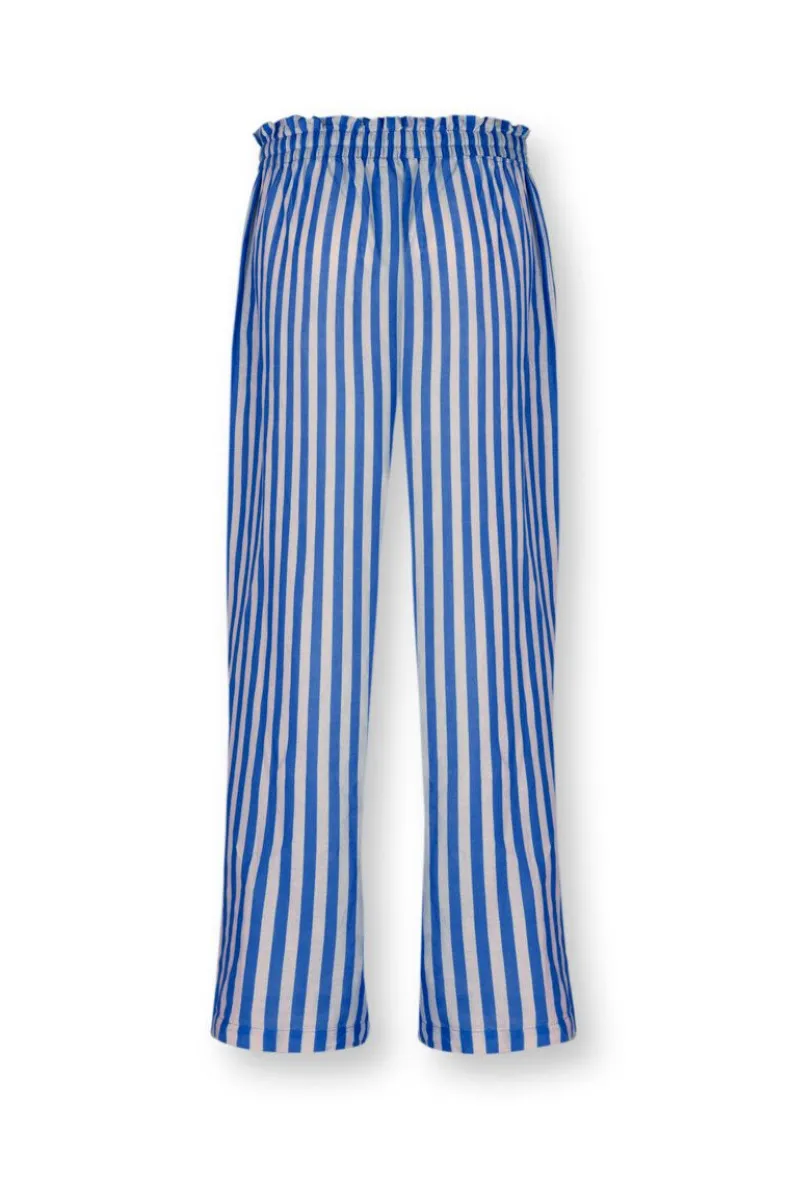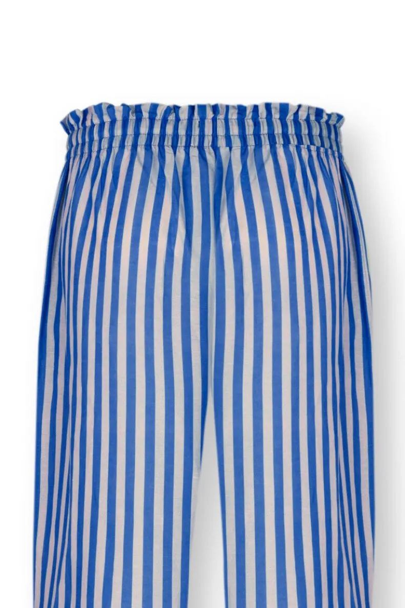 Comfortabel En Zacht, Deze Lange, Blauwe, Bernice Broek Uit Onze Nieuwe Homewear Collectie. Gedecoreerd Met Het Vrolijke Sumo Stripe Dessin Waarin Verticale Strepen De Hoofdrol Spelen. De Taille Is Elastisch En Heeft Een Koord Rondom Voor Ultiem Comfort. Mix & Match Deze Broek Met De Vrolijke Prints En Comfortabele Items Uit Onze Nieuwste Homewear Collectie En Creeer Een Prachtige Outfit.
