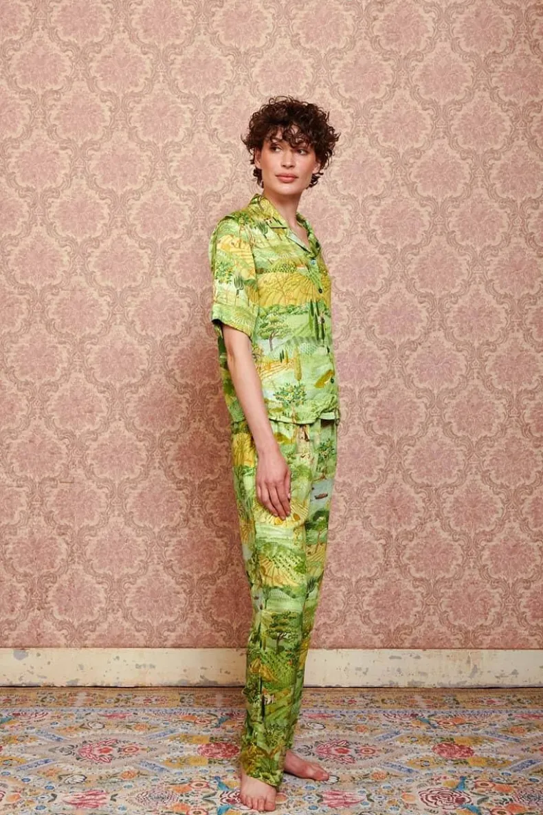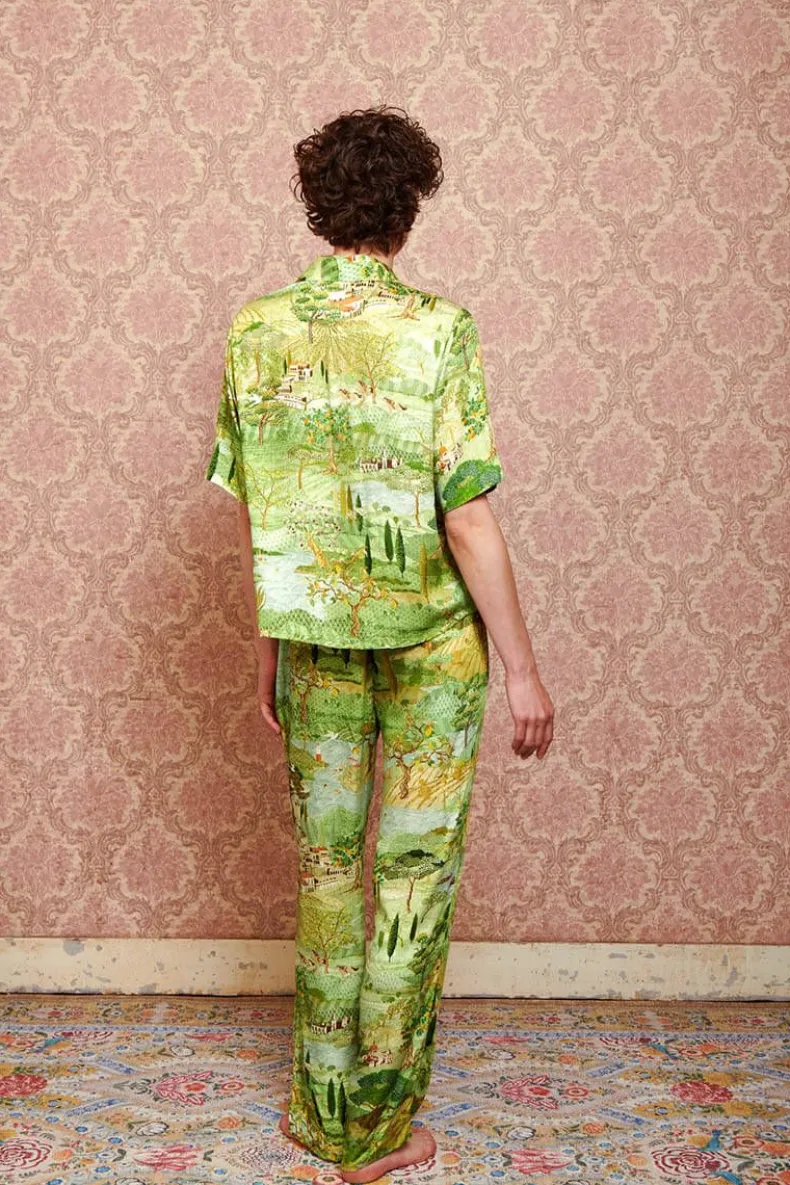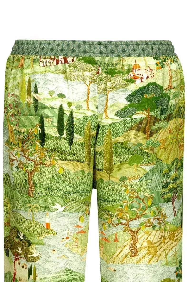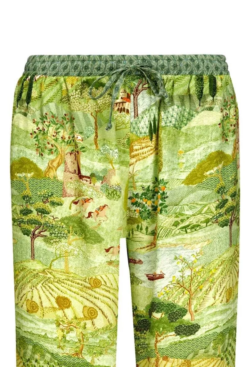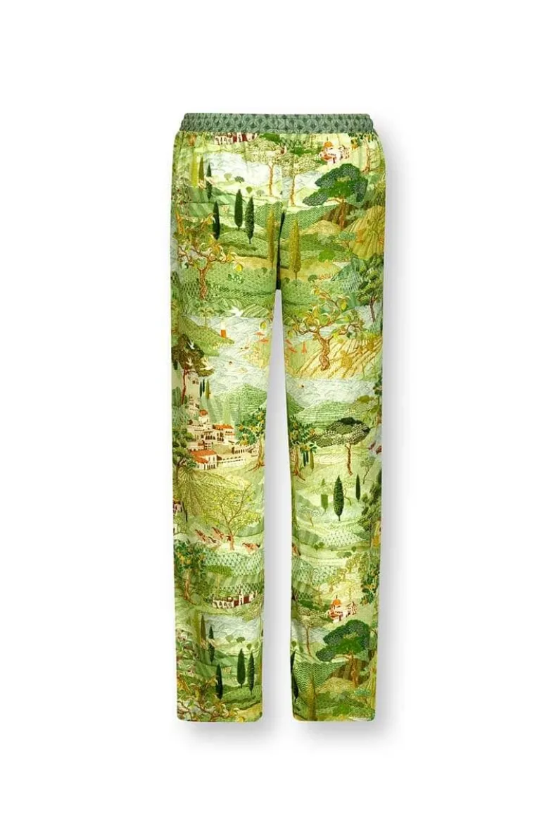 Deze Lange Broek In Het Groen Is Uitgevoerd Met Het Prachtige Toscana Dessin. De Cipressen En Subtiele Verwijzingen In De Print Naar De Toscaanse Cultuur Geven Je Het Gevoel Midden In Het Italiaanse Landschap Te Zijn. Gemaakt Van Viscose, Waardoor De Broek Het Lichaam Heerlijk Flatteerd. De Taille Is Elastisch En Heeft Een Koord Rondom Voor Een Comfortabele Fit. Mix En Match Deze Broek Met Items Uit De Nieuwe Homewear Collectie Voor Een Mooie Look.