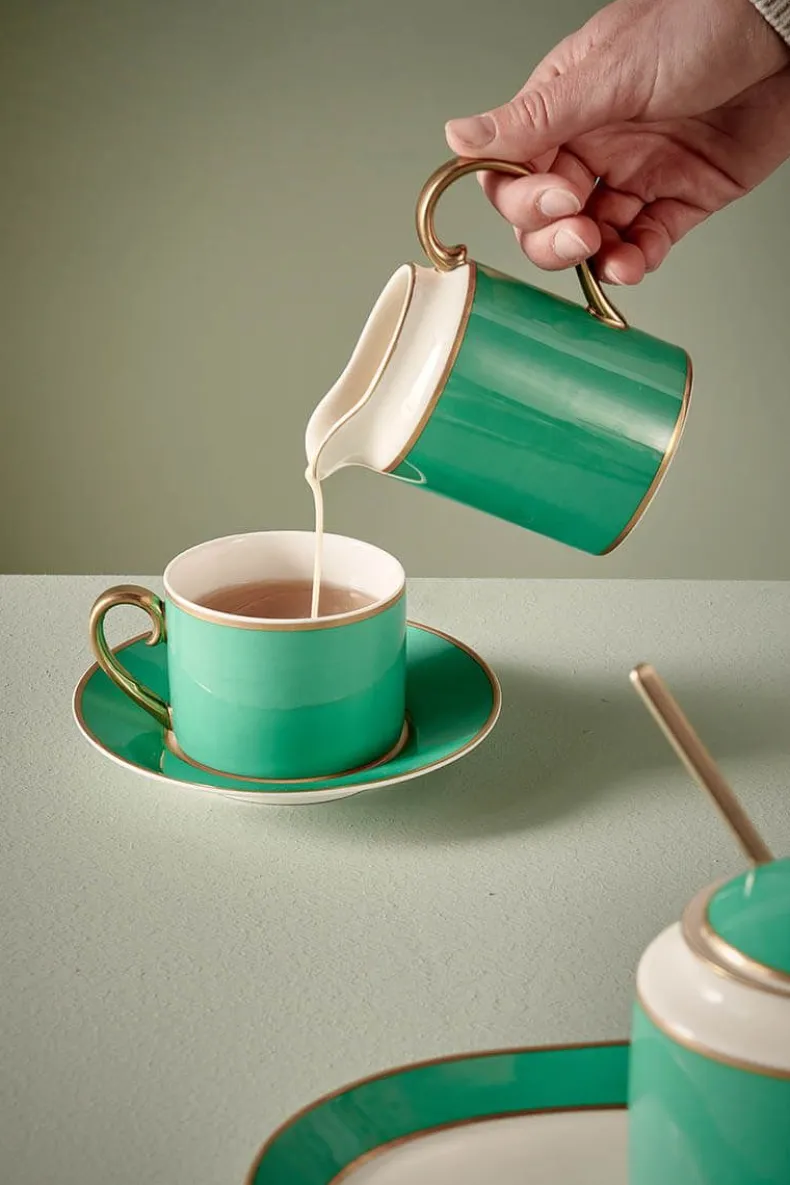 Deze Groene Cappuccino Kop & Schotelheeft Een Groen Dessin Met Een Goud Handvat. Het Porselein Is Gemaakt Van Bone China, Een Hoogwaardig Dun Porselein Met Een Verfijnd Design. Ook Verkrijgbaar In 120 Ml. Perfect Te Combineren Met De Andere Items Van Pip Chique.