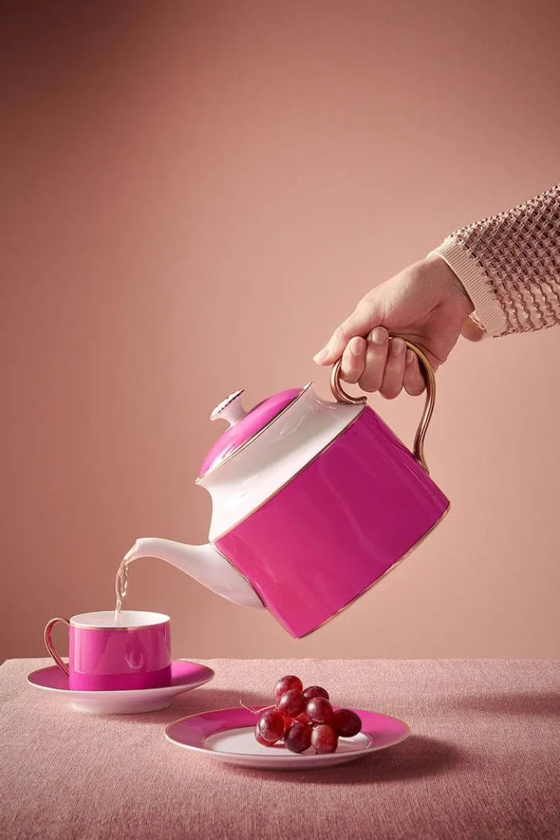 Deze Roze Cappuccino Kop & Schotelheeft Een Groen Dessin Met Een Goud Handvat. Het Porselein Is Gemaakt Van Bone China, Een Hoogwaardig Dun Porselein Met Een Verfijnd Design. Ook Verkrijgbaar In 120 Ml. Perfect Te Combineren Met De Andere Items Van Pip Chique.