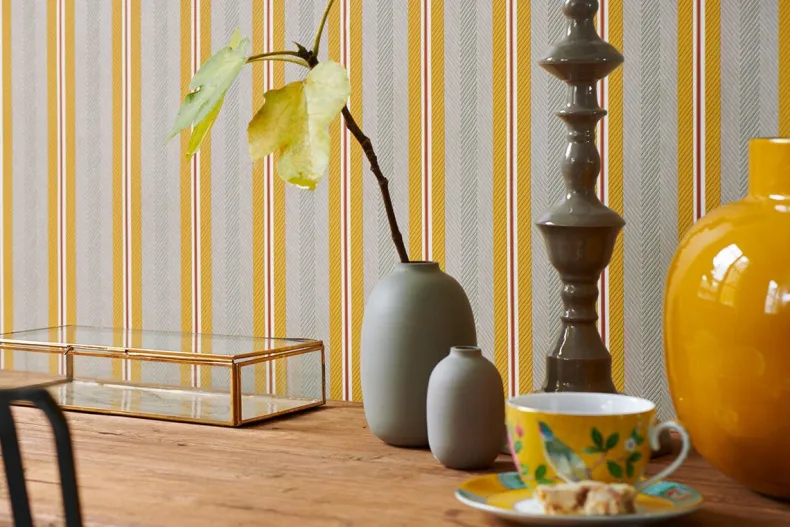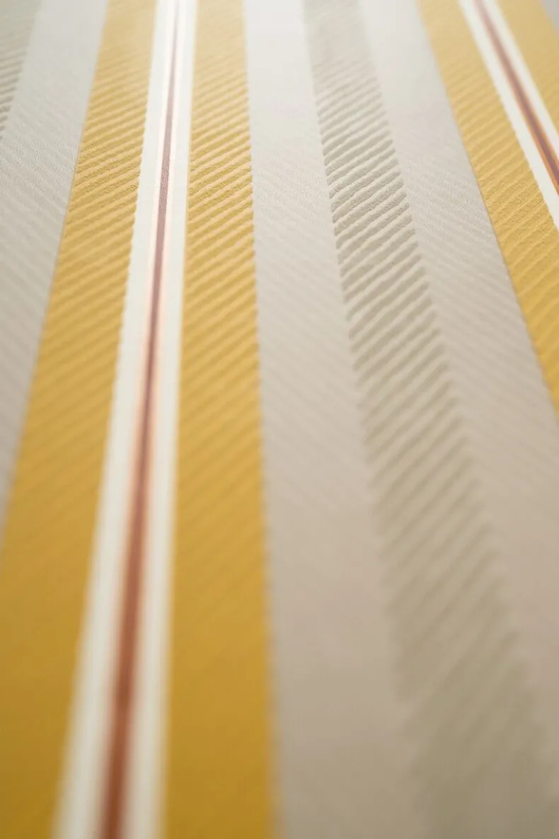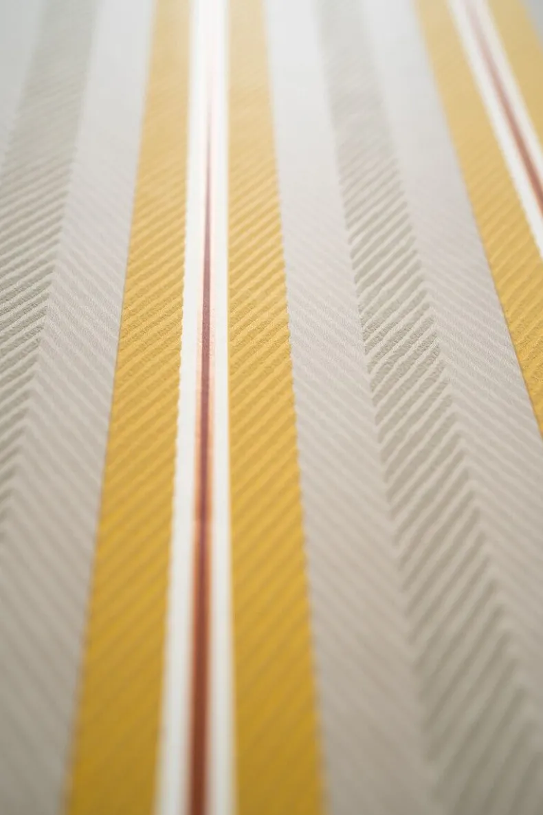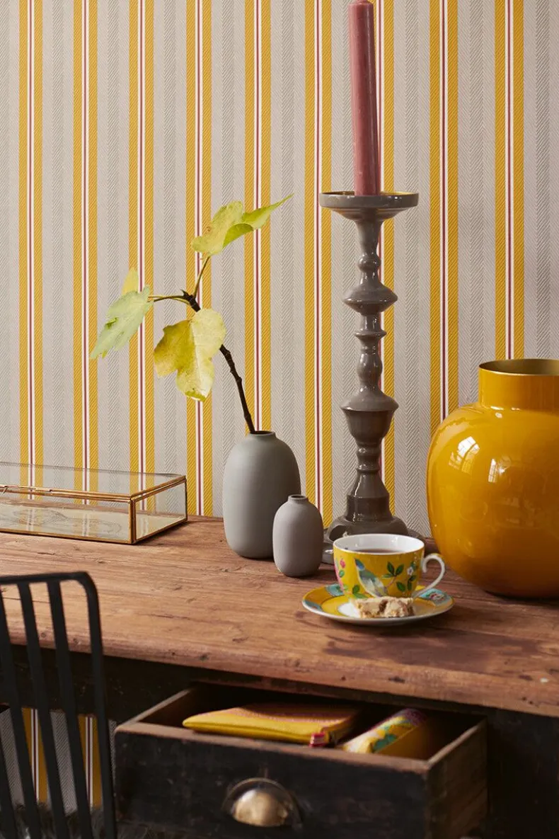 Wat Het Beige/Gele Blurred Lines Dessin Een Blikvanger Op Je Muur Maakt? Het Strepen Dessin Blurred Lines Heeft Een Grafische Streep Met Chevron Patroon. Deze Grafische Streep In Structuur Heeft Een Heel Subtiel Glanzend Streepje En Is Door De Uitgesproken Kleurstellingen Een Echte Pip Streep. Het Blurred Lines Dessin Is Makkelijk Te Combineren Met Bijna Alle Andere Dessins Uit De Collectie, Waardoor Er Een Leuk Mix & Match Effect Ontstaat. Het Pip Studio Blurred Lines Behang Is Verkrijgbaar In Verschillende Kleuren: Khaki/Roze, Oker/Karamel, Donkerblauw, Groen En Beige En Creeert Een Vrolijke Sfeer In Je Huis.