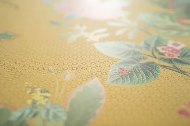 Wat Het Gele Floris Dessin Een Blikvanger Op Je Muur Maakt? Het Botanische Dessin Floris Heeft Een Opengewerkte Jungle Bladerprint Met Grote Bloemen, Planten En Hier En Daar Een Verstopte Vogel. In De Ondergrond Is Een Klein Sterretje In Het Relief Aangebracht. Prachtig In Combinatie Met Bijvoorbeeld Het Strepen Dessin Blurred Lines. Het Pip Studio Floris Behang Is Verkrijgbaar In Verschillende Kleuren Zoals Khaki/Roze, Oker/Karamel, Donkerblauw, Groen En Beige En Creeert Een Vrolijke Sfeer In Je Huis.