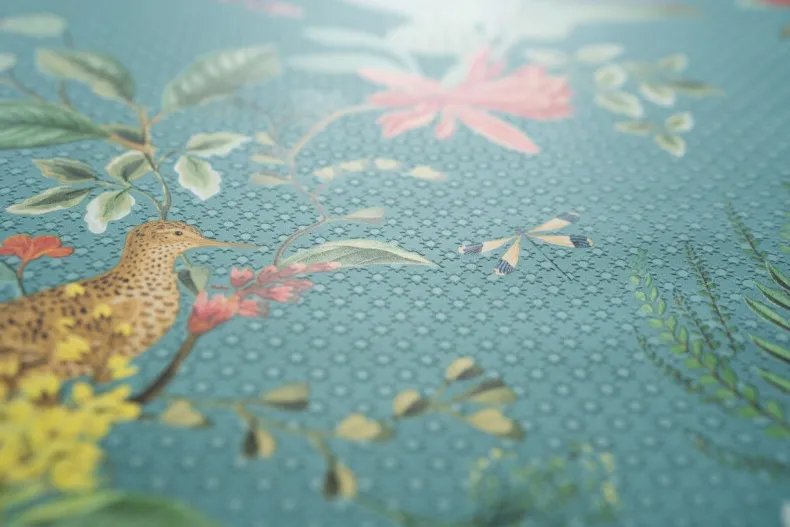 Wat Het Petrol Floris Dessin Een Blikvanger Op Je Muur Maakt? Het Botanische Dessin Floris Heeft Een Opengewerkte Jungle Bladerprint Met Grote Bloemen, Planten En Hier En Daar Een Verstopte Vogel. In De Ondergrond Is Een Klein Sterretje In Het Relief Aangebracht. Prachtig In Combinatie Met Bijvoorbeeld Het Strepen Dessin Blurred Lines. Het Pip Studio Floris Behang Is Verkrijgbaar In Verschillende Kleuren Zoals Khaki/Roze, Oker/Karamel, Donkerblauw, Groen En Beige En Creeert Een Vrolijke Sfeer In Je Huis.