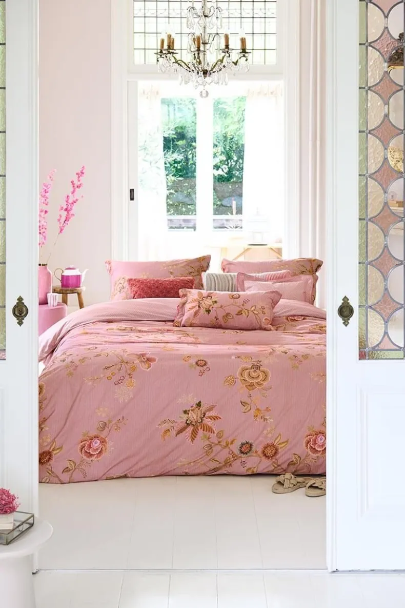 Het Roze Cece Fiore Sierkussen Heeft Een Prachtig Bloemendessin, Opgebouwd Uit Grote En Rijke Fanatasiebloemen. De Achterkant Heeft Een Patroon Van Blaadjes. Het Sierkussen Heeft Een Doorgestikte Oxford Rand Aan De Zijkanten Met Een Unieke Striksluiting, Wat Een Luxe Uitstraling Geeft. Het Kussen Is Tweezijdig Te Gebruiken.