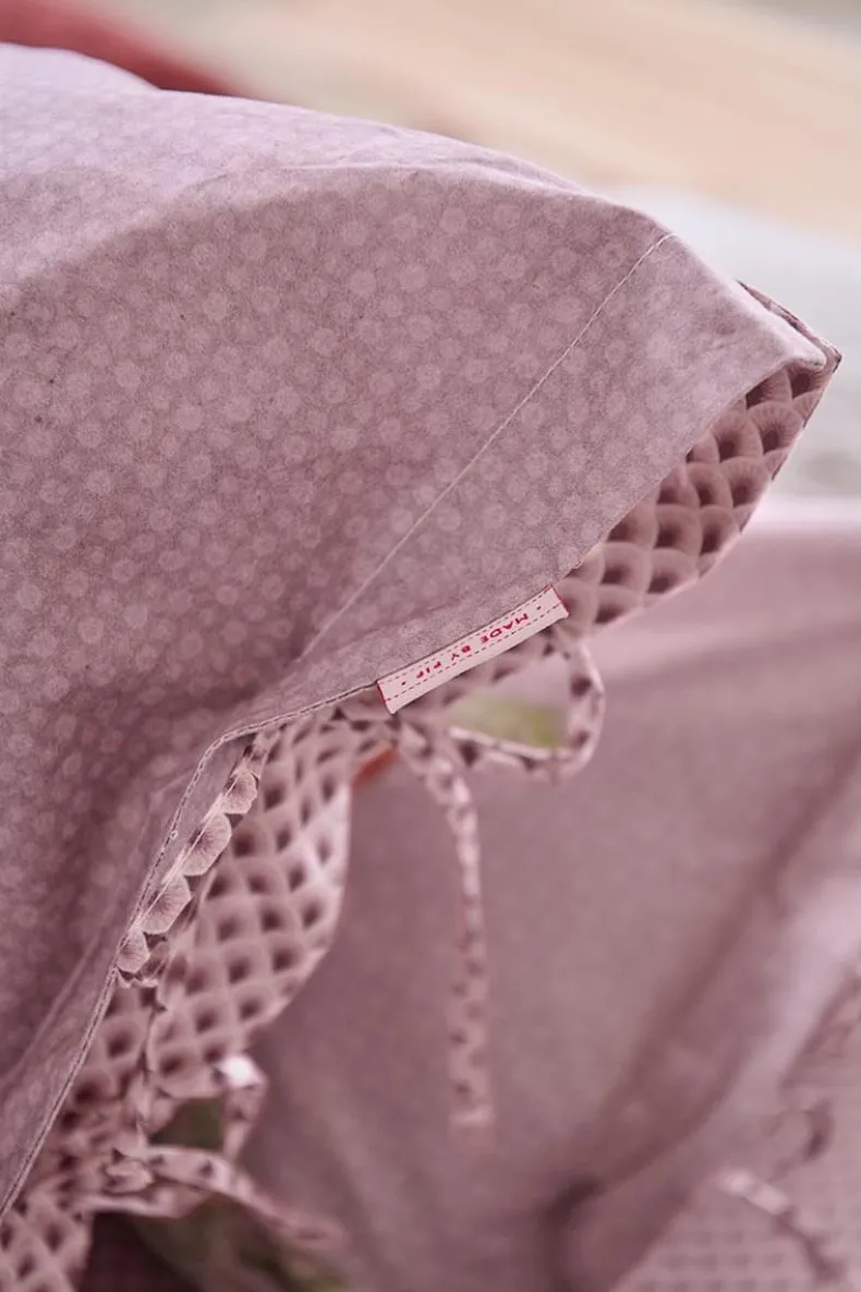 Het Romantische Lila Okinawa Sierkussen Is Geinspireerd Op Oosterse Chinoiserie-Prints. Sierlijke Pauwen Staan Parmantig Liefdevol In Een Landschap Van Japanse Bloesembomen En Orientaalse Fruitboompjes. Aan De Takken Groeien Prachtige Bloemen, Exotisch Fruit En Kleine Sierbessen. De Achterkant Heeft Een Patroon Van Kleine Boogjes. Beide Zijkanten Van Het Sierkussen Hebben Een Tegelprintje. Dit Geeft Het Okinawa Kussen Tezamen Met De Striksluiting Een Rijke Uitstraling. Het Kussen Kun Je Tweezijdig Gebruiken. Het Sierkussen Okinawa Is Verkijgbaar In Meerdere Kleuren.