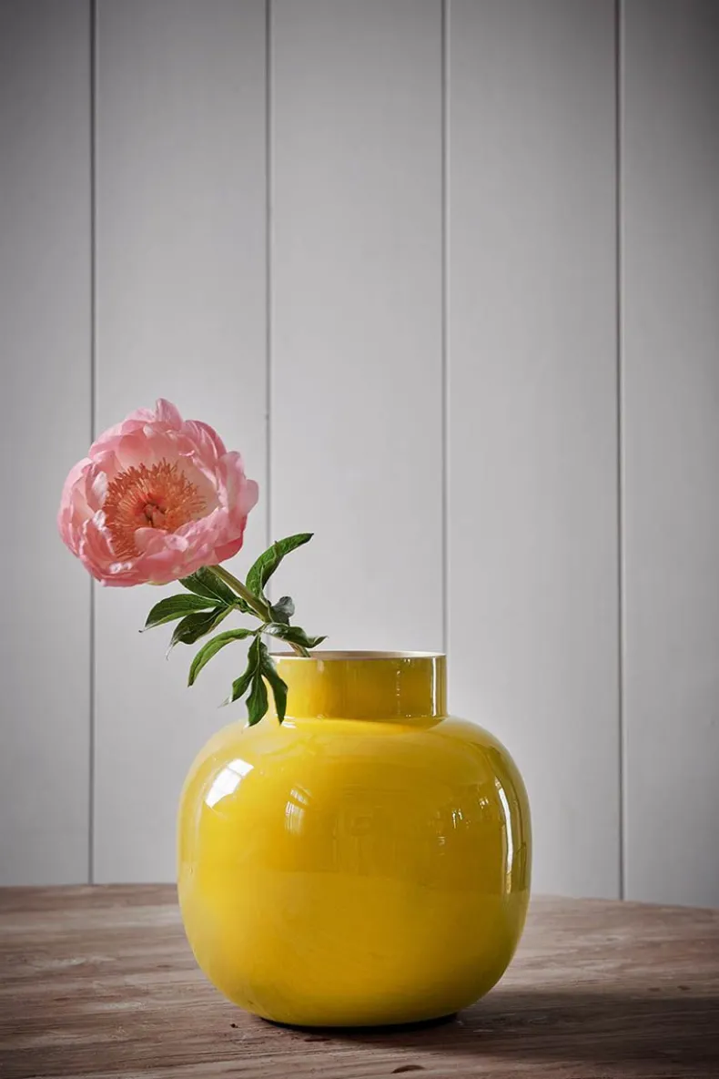 In Deze Gele Metalen Vaas Uit De Blushing Birds Collectie Komen Je Bloemen Extra Mooi Uit. Ook Verkrijgbaar In Andere Kleuren En In Een Ovalen Variant. Combineer Deze Vaas Met Onze Pip Bloemen Voor Een Prachtig Resultaat.
